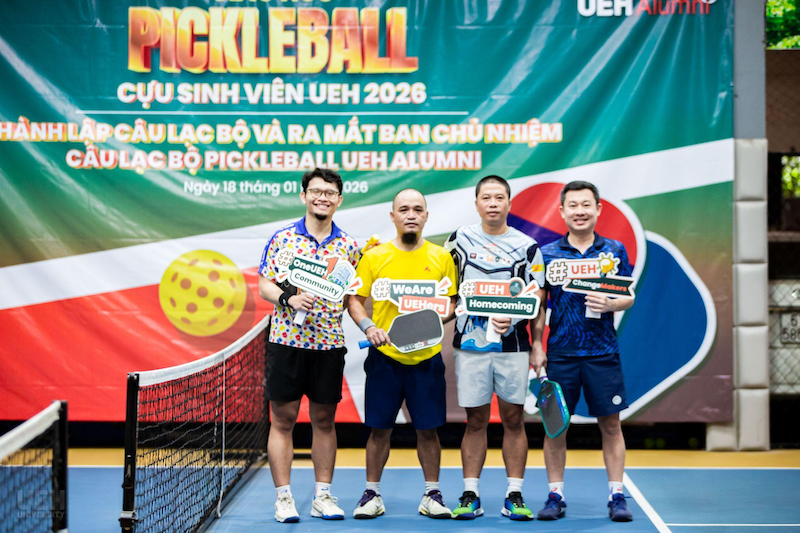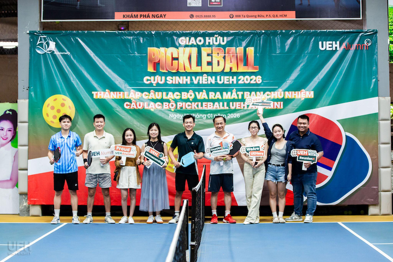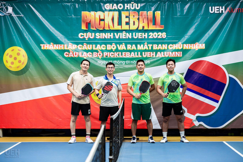 Sáng ngày 18/01/2026, tại sân 3T Pickleball Club, UEH Alumni đã tổ chức Giải giao lưu “Ready for Homecoming 2026” và chính thức ra mắt Câu lạc bộ (CLB) Pickleball dành cho cựu sinh viên. Đây là hoạt động thể thao ý nghĩa, hướng tới chuỗi sự kiện chào mừng kỷ niệm 50 năm thành lập Đại học Kinh tế Thành phố Hồ Chí Minh (UEH).