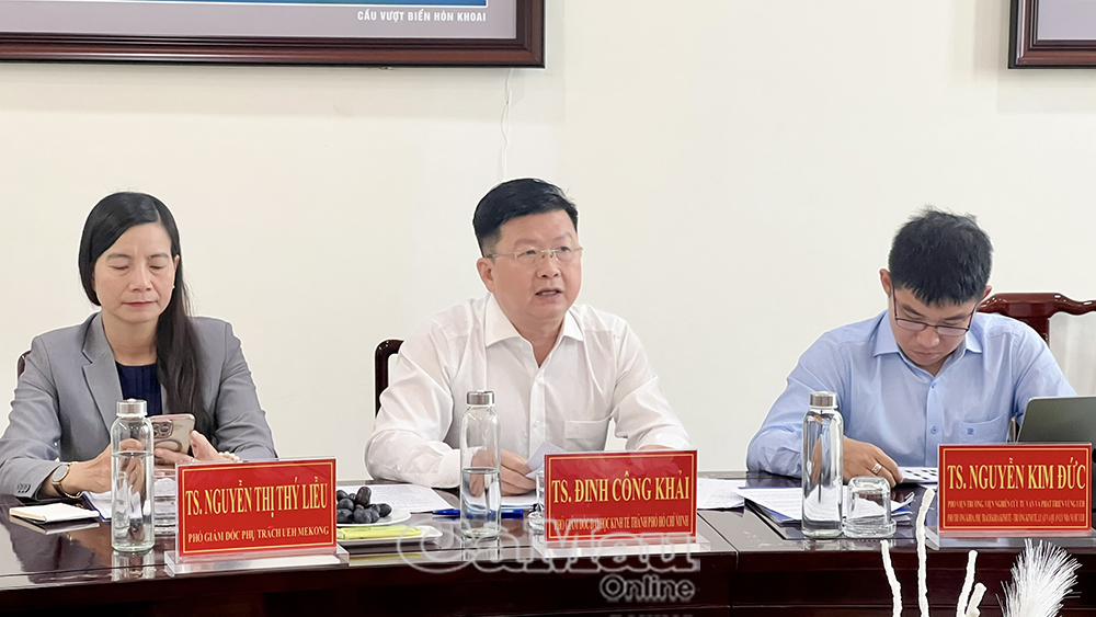 Tiến sĩ Quách Văn Ấn, Phó Giám đốc Sở Khoa học và Công nghệ tỉnh Cà Mau phát biểu, đề xuất một số nội dung phối hợp thời gian tới. Ảnh: Trúc Linh.