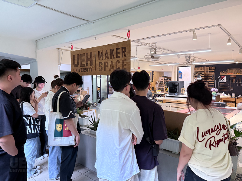 Chương trình cũng đưa sinh viên đến với UEH Maker Space - không gian sáng tạo dành cho các hoạt động nghiên cứu, thử nghiệm ý tưởng và phát triển dự án của sinh viên. Ngoài ra, đoàn còn tìm hiểu về các sáng kiến phát triển bền vững của nhà trường thông qua máy tái sử dụng rác thải, thể hiện định hướng xây dựng môi trường đại học xanh và trách nhiệm với cộng đồng.