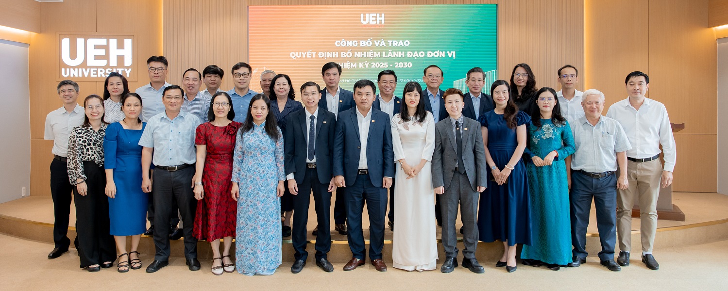 Sáng ngày 31/12/2025, Đại học Kinh tế Thành phố Hồ Chí Minh (UEH) long trọng tổ chức lễ công bố và trao quyết định bổ nhiệm lãnh đạo đơn vị nhiệm kỳ 2025-2030, hướng tới giai đoạn mới với đội ngũ lãnh đạo kế cận tiếp tục đảm nhận trọng trách phát triển Đại học Đa ngành và Bền vững.