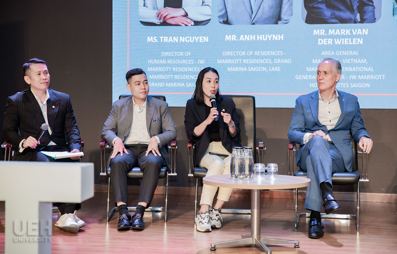 Phát biểu khai mạc tại buổi lễ, PGS.TS. Trần Thị Hải Lý – Phó Hiệu trưởng Trường Kinh doanh UEH chia sẻ: “Tập đoàn Marriott luôn đồng hành cùng UEH trong quá trình đào tạo được xem là hoạt động quan trọng trong chiến lược gắn kết giữa nhà trường và doanh nghiệp. Các cơ hội mà tập đoàn số một toàn cầu về quản lý khách sạn như Marriott luôn mang đến cho sinh viên môi trường học tập gắn liền thực tiễn, đồng thời góp phần phát triển nguồn nhân lực chất lượng cao cho ngành du lịch – khách sạn tại Việt Nam trong bối cảnh hội nhập quốc tế. Ngoài ra cơ hội được đối thoại với các Tổng Quản lý của các cơ sở lưu trú cũng sẽ giúp sinh viên có thể định hướng lộ trình thăng tiến của mình trong tương lai.”