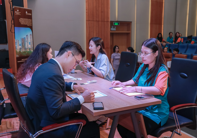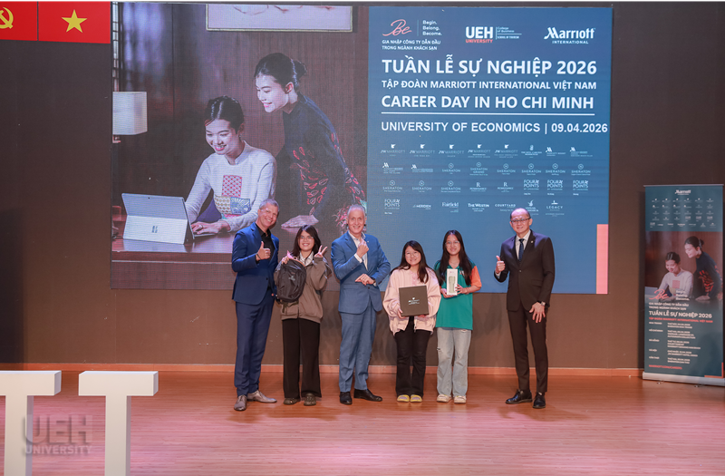 Ngày hội việc làm Marriott 2026 tại UEH chính thức khép lại sau phiên phỏng vấn. Chương trình đã mang lại cho các bạn sinh viên tham gia nhiều trải nghiệm thú vị cũng như các thông tin cần thiết để các bạn có thể định hình lộ trình thăng tiến của mình trong tương lai. Chương trình cũng là minh chứng rõ nét cho chất lượng đào tạo của ngành Quản trị Khách sạn tại UEH, với định hướng gắn kết chặt chẽ giữa lý thuyết và thực tiễn. Thông qua sự hợp tác chiến lược với các tập đoàn khách sạn đa quốc gia như Marriott International, UEH không chỉ mang đến cho sinh viên nền tảng kiến thức chuyên môn vững chắc mà còn tạo điều kiện để các bạn tiếp cận trực tiếp với môi trường làm việc quốc tế ngay từ khi còn trên giảng đường. Sự đồng hành của doanh nghiệp trong các hoạt động học thuật và hướng nghiệp đã góp phần mở rộng cơ hội thực tập, việc làm, cũng như giúp sinh viên xây dựng lộ trình phát triển nghề nghiệp rõ ràng, sẵn sàng hội nhập vào thị trường lao động toàn cầu.