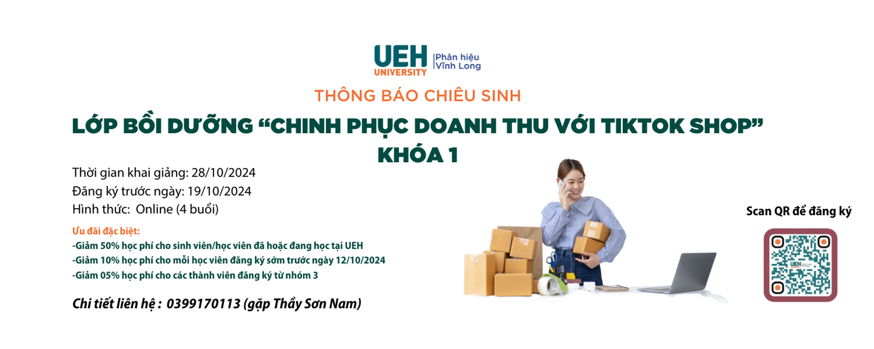 8. Đăng ký khóa học: Học viên có nhu cầu đăng ký tại đây, trước ngày 19/10/2024 (thời gian đăng ký có thể kết thúc sớm hơn dự kiến nếu đủ số lượng học viên và đặc biệt nếu đăng ký trước ngày 12/10/2024 sẽ nhận được ưu đãi giảm giá 10%).