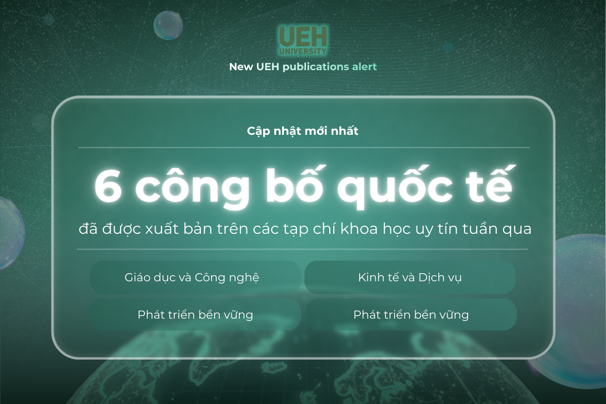 Chuỗi New UEH Publications Alert sẽ tiếp tục cập nhật định kỳ hàng tuần các công bố quốc tế mới của UEH. Kính mời Quý Thầy/Cô, Quý Anh/Chị cựu sinh viên, Người học theo dõi để đồng hành lan tỏa tinh thần Research Contribution for All – Nghiên cứu vì lợi ích cộng đồng.