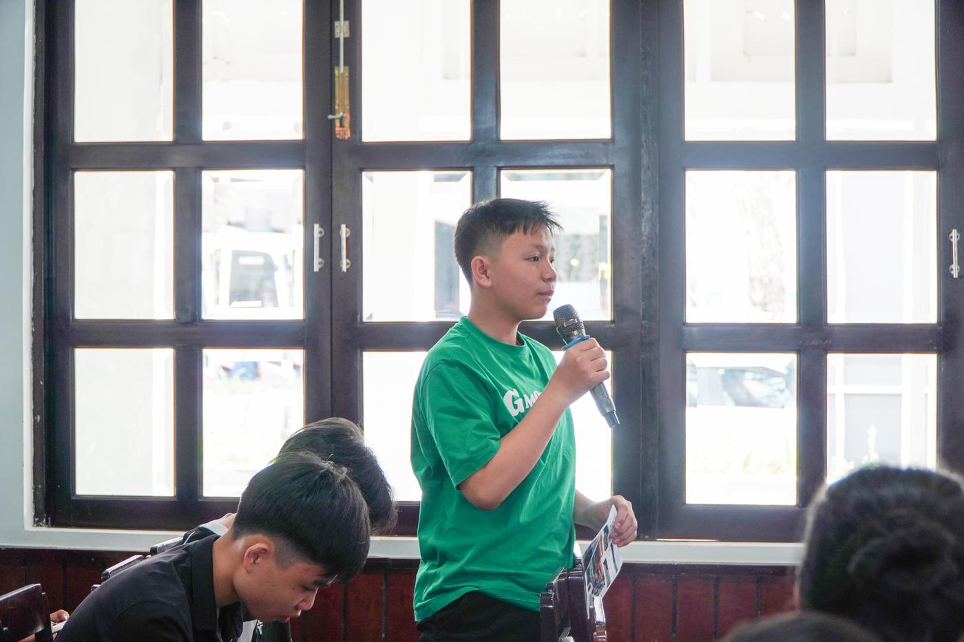 ThS. Nguyễn Trung Tiến - Giảng viên khoa Quản trị, Bí thư Đoàn phân hiệu giải đáp thắc mắc của học sinh về chương trình đào tạo Logistics và Quản lý chuỗi cung ứng, tham gia hoạt động phong trào rèn luyện kỹ năng