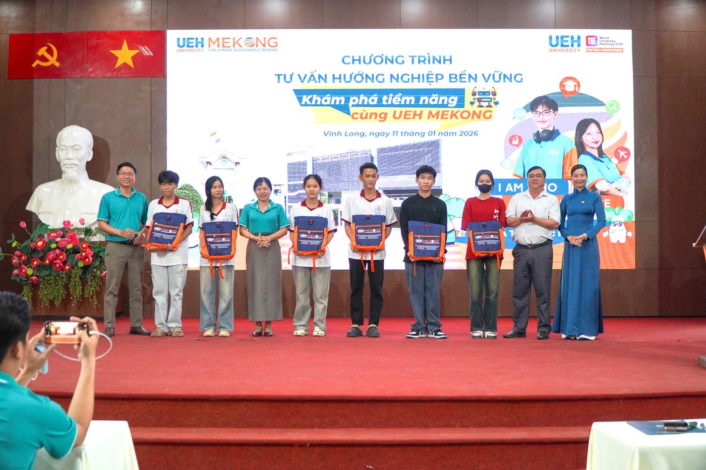 Nhằm đồng hành cùng học sinh THPT trong hành trình định hướng nghề nghiệp và lựa chọn môi trường học tập phù hợp, Phân hiệu Đại học Kinh tế Thành phố Hồ Chí Minh tại tỉnh Vĩnh Long (UEH Mekong) chính thức khởi động Chương trình đón học sinh các trường THPT đến tham quan và tham gia tư vấn tuyển sinh, hướng nghiệp năm 2026, với chủ đề Campus tour - “Khám phá tiềm năng cùng UEH Mekong” vào ngày 11/01/2026.