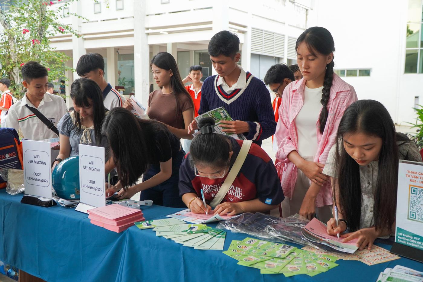 Ngoài ra, chương trình còn mang đến nhiều hoạt động trải nghiệm thú vị như: Thi đấu robot và tiếp cận sản phẩm công nghệ do sinh viên ngành Robot và Trí tuệ nhân tạo nghiên cứu, chế tạo; Tìm hiểu mô hình Đại học xanh UEH thông qua UEH Green Campus Game và công cụ AI thực hành phân loại rác, cùng các gian hàng trò chơi và hoạt động tương tác thú vị từ các Câu lạc bộ sinh viên UEH Mekong. Những trải nghiệm này giúp học sinh hình dung rõ hơn về môi trường đại học, khơi gợi đam mê và từng bước nhận diện tiềm năng bản thân, làm nền tảng cho việc lựa chọn ngành học trong tương lai.