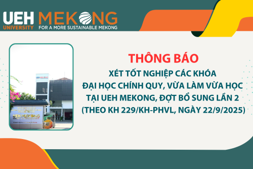 UEH Mekong - Thông báo Xét tốt nghiệp Đợt bổ sung lần 2 (Theo Kế hoạch 229/KH-PHVL ngày 22/9/2025) các khóa Đại học chính quy, Liên thông chính quy, VLVH tại UEH Mekong
