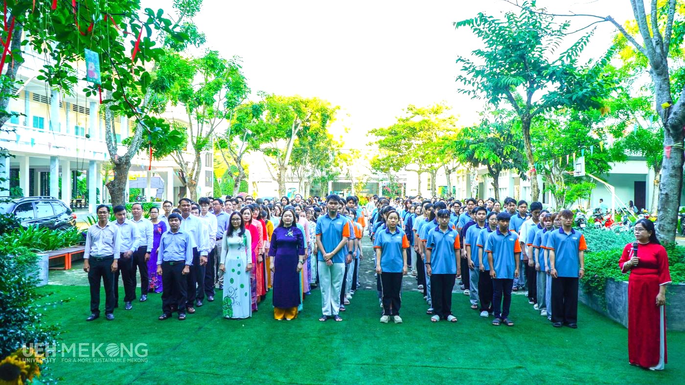• Sáng thứ Hai, ngày 02/3/2026, trong không khí trang nghiêm của lễ chào cờ đầu tuần, Nữ VC-NLĐ UEH Mekong với áo dài truyền thống, chụp ảnh lưu niệm hưởng ứng “Tuần lễ Áo dài” năm 2026. Những tà áo dài thướt tha với sắc màu trang nhã đã làm bừng sáng khuôn viên UEH Mekong, tôn lên vẻ đẹp dịu dàng, thanh lịch của nữ viên chức, người lao động. Hoạt động không chỉ góp phần tôn vinh giá trị của trang phục truyền thống mà còn lan tỏa hình ảnh người phụ nữ hiện đại - bản lĩnh, trí tuệ và nhân văn, đồng thời thể hiện tinh thần đoàn kết và nét đẹp chuyên nghiệp của tập thể nữ VC-NLĐ UEH Mekong.