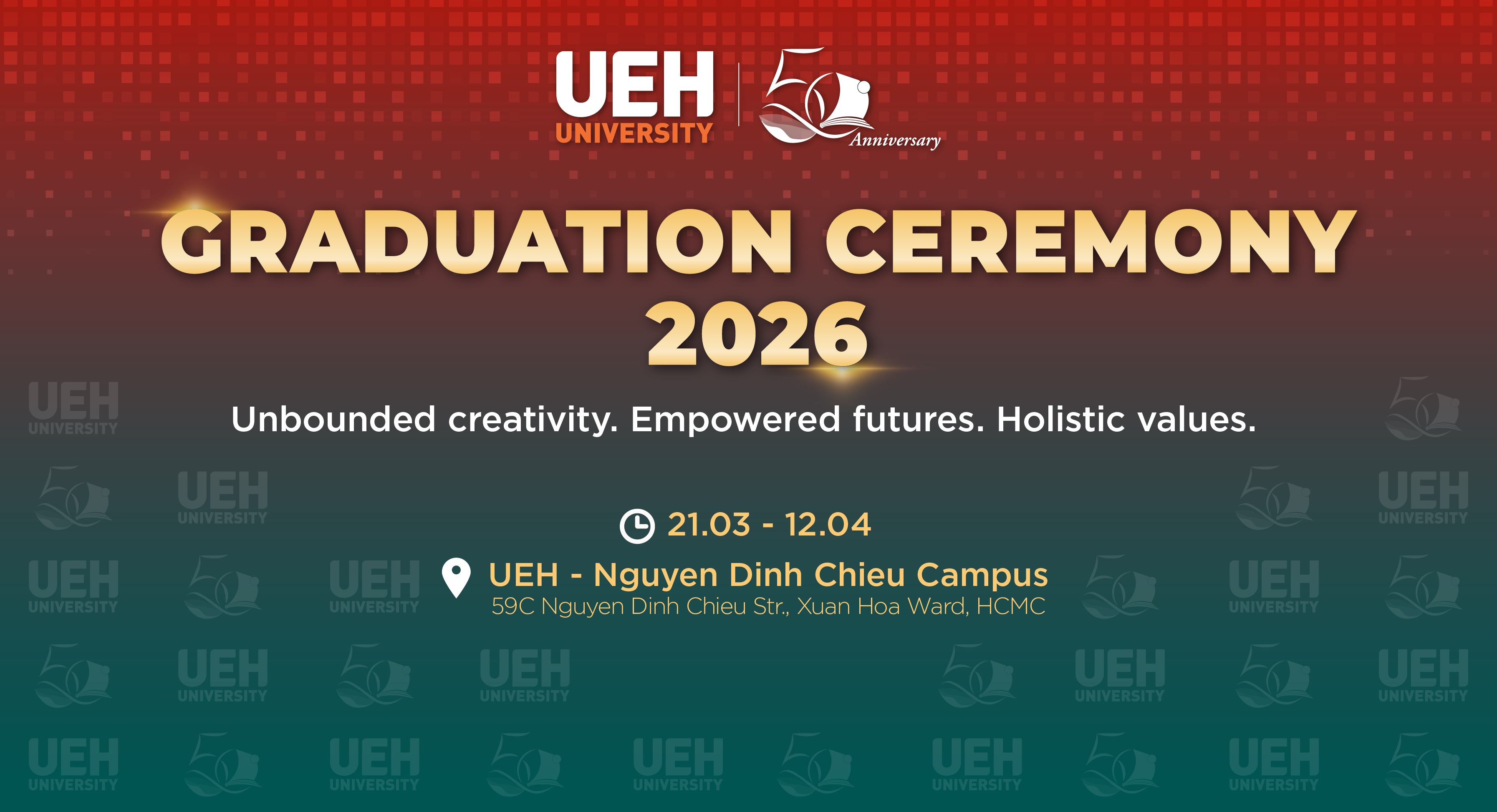 Trong tháng 3-4/2026, Đại học Kinh tế Thành phố Hồ Chí Minh (UEH) long trọng tổ chức Lễ Tốt nghiệp dành cho các sinh viên bậc đại học xét tốt nghiệp đợt 3, 4 năm 2025 và học viên các khóa sau đại học.
