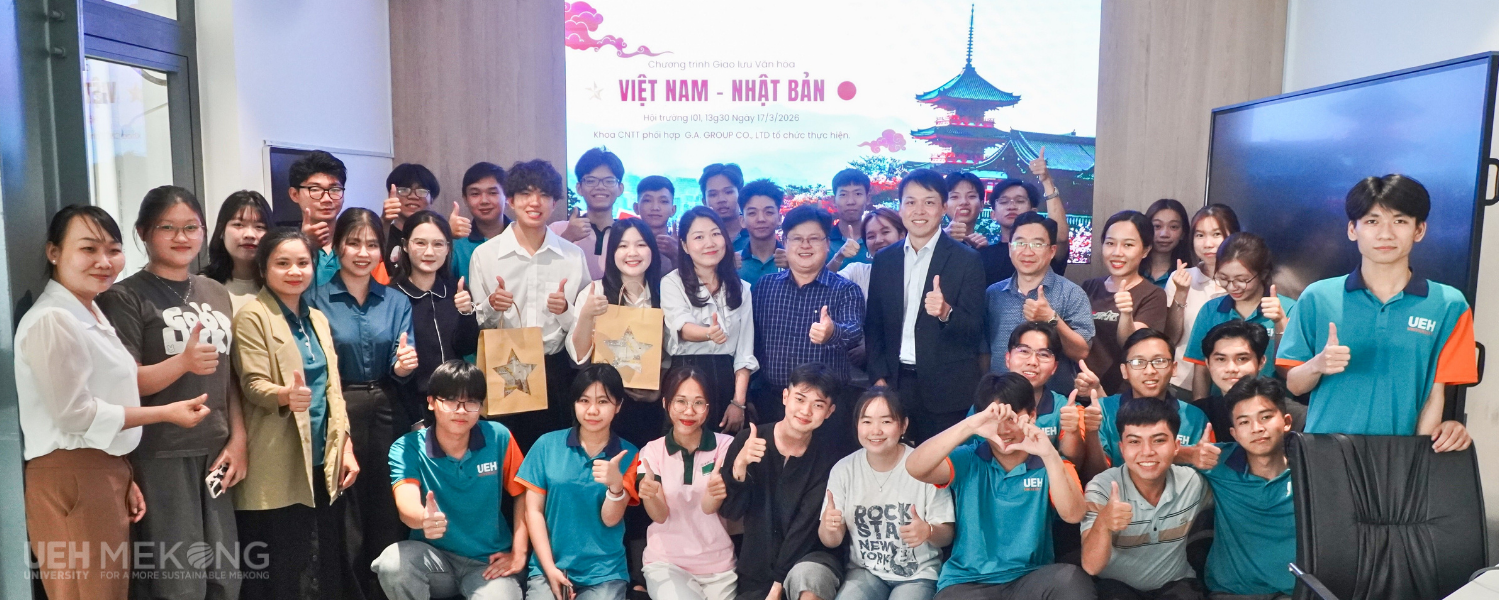 Ngày 17/3/2026, UEH Mekong đã tổ chức Chương trình Giao lưu văn hóa Nhật Bản với chủ đề "Trải nghiệm trang phục Yukata Nhật Bản" dành cho sinh viên UEH Mekong. Đây là sự kiện do Khoa Công nghệ thông tin phối hợp cùng Công ty G.A Consultants tổ chức, tạo nhịp cầu kết nối giữa sinh viên UEH với các doanh nghiệp và bạn bè quốc tế. Hoạt động này không chỉ mở ra không gian văn hóa đa sắc màu mà còn khơi dậy tư duy hội nhập, giúp sinh viên tự tin định vị bản thân trong dòng chảy toàn cầu hóa của môi trường giáo dục hiện đại.