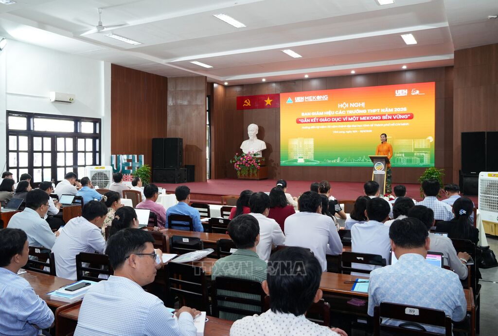 Ngày 16/4, Đại học Kinh tế Thành phố Hồ Chí Minh (UEH) phối hợp Sở Giáo dục và Đào tạo tỉnh Vĩnh Long tổ chức Hội nghị lãnh đạo các trường trung học phổ thông khu vực Đồng bằng sông Cửu Long năm 2026 với chủ đề “Gắn kết giáo dục vì một Mekong bền vững”.