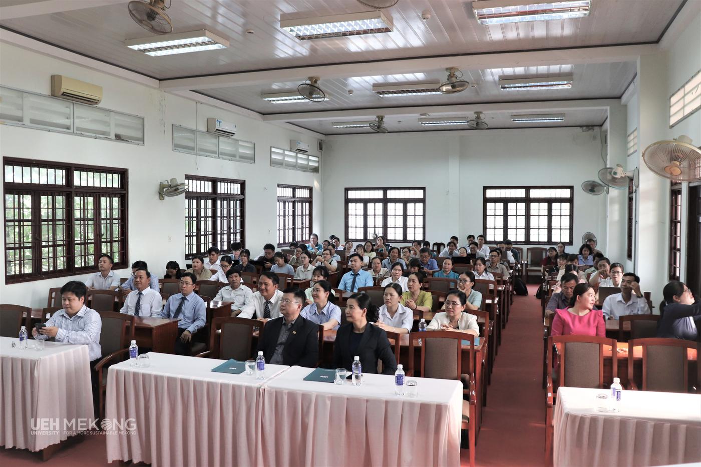 Chương trình do TS. Đinh Công Khải - Phó Giám đốc UEH chủ trì, với sự tham dự của Ban Giám đốc UEH Mekong, lãnh đạo các đơn vị cùng toàn thể viên chức, người lao động.