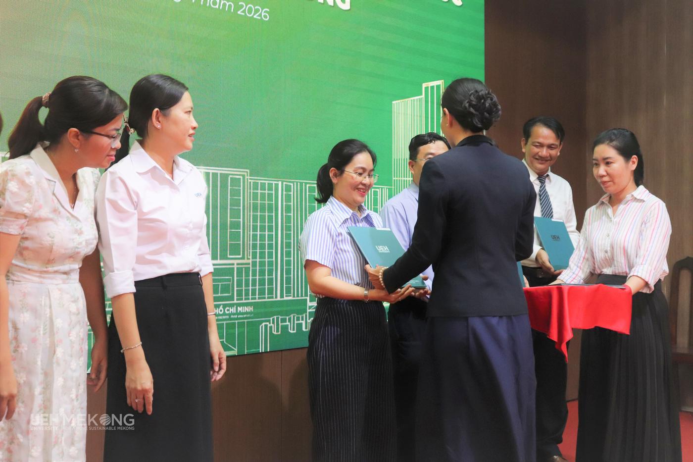 Thay mặt các viên chức nhận nhiệm vụ, ThS. Nguyễn Thị Diễm - Phó Trưởng nhóm phụ trách nhóm học phần thuộc Khoa Tài chính - Kế toán - Đại diện viên chức được giao nhiệm vụ bày tỏ: “Đây không chỉ là vinh dự mà còn là trách nhiệm lớn trong giai đoạn UEH Mekong đang chuyển mình mạnh mẽ. Trên cương vị mới, chúng tôi cam kết phát huy tinh thần trách nhiệm, chủ động, kỷ luật; không ngừng nâng cao chuyên môn, tăng cường phối hợp, góp phần xây dựng môi trường làm việc và học thuật tích cực, hiệu quả, hướng đến hình ảnh UEH Mekong hiện đại, chuyên nghiệp và trách nhiệm. Đồng thời, mong muốn tiếp tục nhận được sự quan tâm, định hướng và đồng hành của lãnh đạo và tập thể để hoàn thành tốt nhiệm vụ, góp phần vào sự phát triển bền vững của UEH Mekong”.