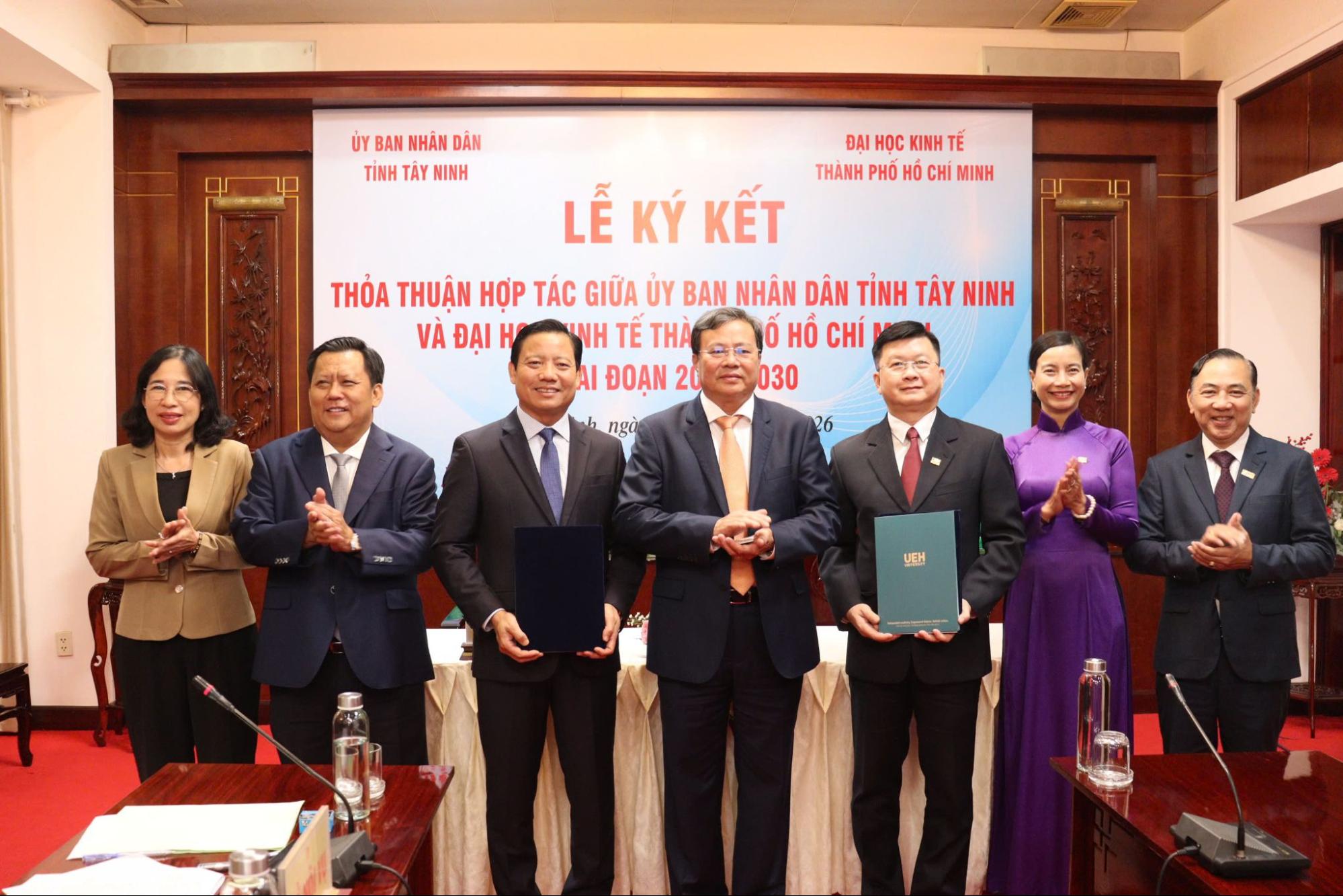 Ngày 16/04/2026, Đại học Kinh tế Thành phố Hồ Chí Minh (UEH) và UBND tỉnh Tây Ninh chính thức ký kết Thỏa thuận hợp tác giai đoạn 2026-2030 nhằm tăng cường kết nối giữa Nhà trường và địa phương, góp phần phát triển nguồn nhân lực chất lượng cao, phục vụ mục tiêu phát triển kinh tế - xã hội trong bối cảnh chuyển đổi số.