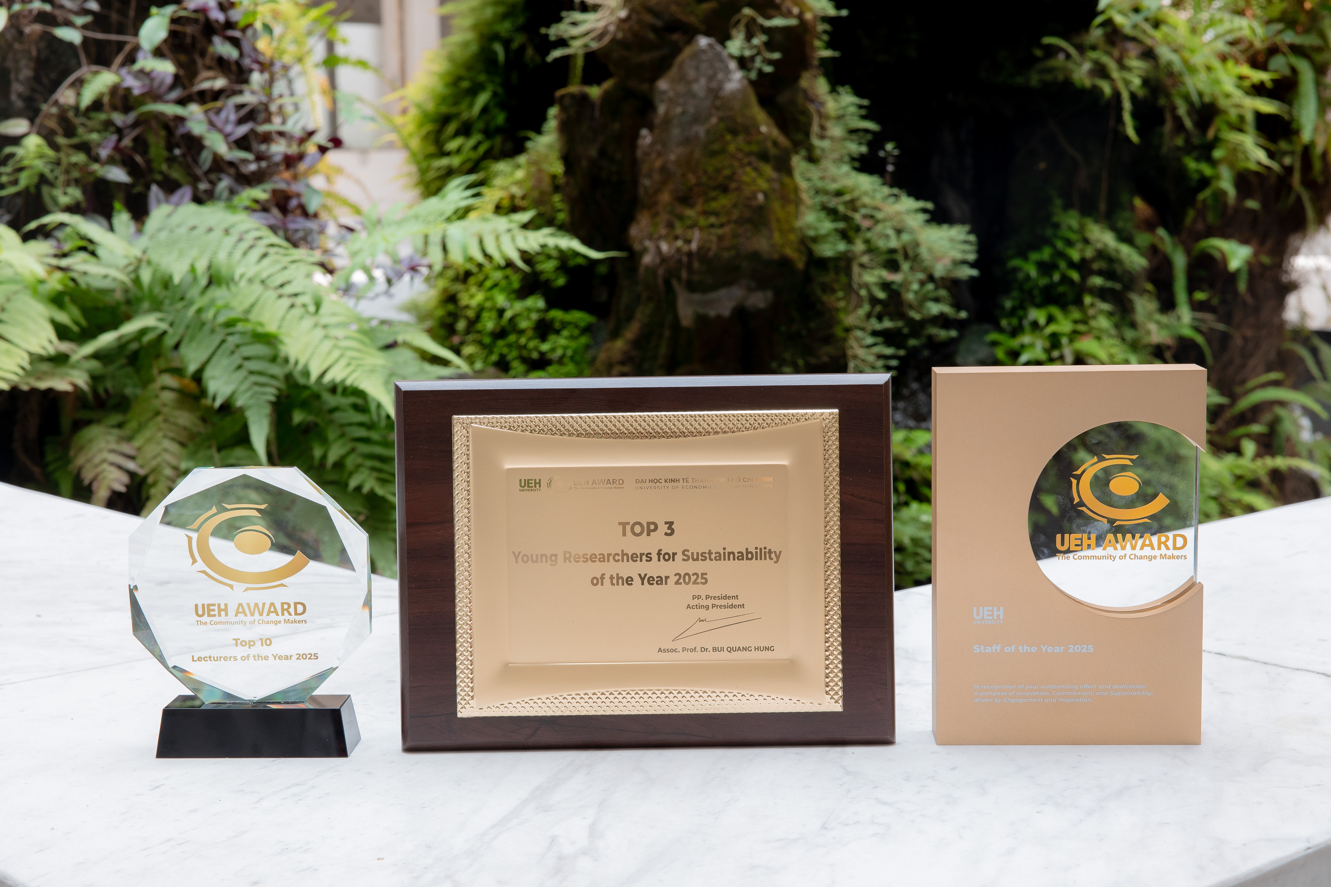 Suốt nửa thế kỷ qua, uy tín của Đại học Kinh tế Thành phố Hồ Chí Minh (UEH) không chỉ được đo bằng những công trình nghiên cứu hay bảng xếp hạng quốc tế, mà còn được vun đắp từ những "di sản nội lực" - chính là đội ngũ con người One UEH. Ra đời từ sự kết tinh của La bàn văn hóa One UEH và trụ cột chiến lược Cộng đồng “Community of Sustainable Changemakers and Art Inspirers”, biểu tượng UEH AWARD không đơn thuần là một giải thưởng. Đó là một thực thể sống động, tôn vinh những “Change Makers”, những người đang chuyển hóa sự Tận tâm, Kết nối, tinh thần Đổi mới, Truyền cảm hứng và trách nhiệm Bền vững thành nhịp đập phát triển của nhà trường.