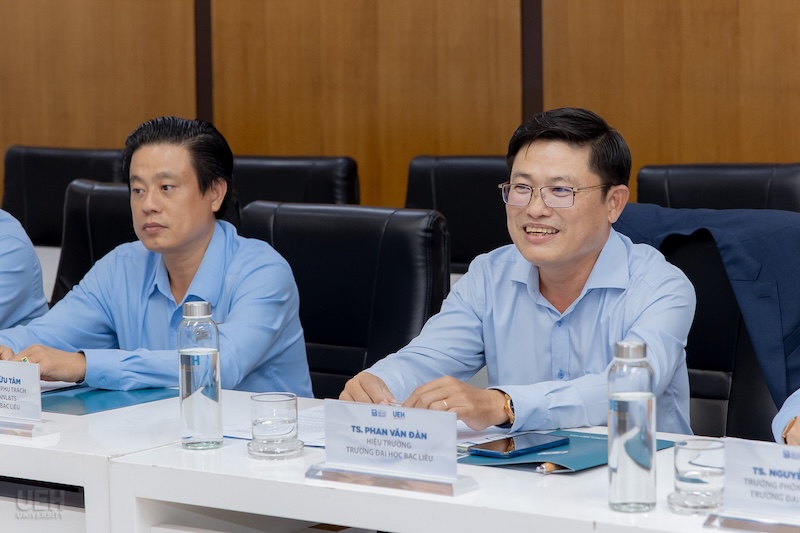 Đại diện Trường Đại học Bạc Liêu, TS. Phan Văn Đàn – Hiệu trưởng bày tỏ ấn tượng với định hướng đào tạo và phát triển nguồn nhân lực của UEH. Theo đó, Trường Đại học Bạc Liêu luôn khuyến khích đội ngũ cán bộ, viên chức và giảng viên học tập, bồi dưỡng và nâng cao trình độ tại UEH. Đồng thời, phía Trường cũng mong muốn học hỏi kinh nghiệm của UEH trong chuyển đổi số, đặc biệt là việc số hóa và ứng dụng công nghệ trong quản lý, khai thác hiệu quả trang thiết bị, cơ sở vật chất. Đặc biệt, ông nhấn mạnh mong muốn tăng cường chia sẻ và kết nối nguồn dữ liệu, học liệu giữa các trường, nhằm tạo điều kiện thuận lợi cho người học trong quá trình học tập và nghiên cứu.