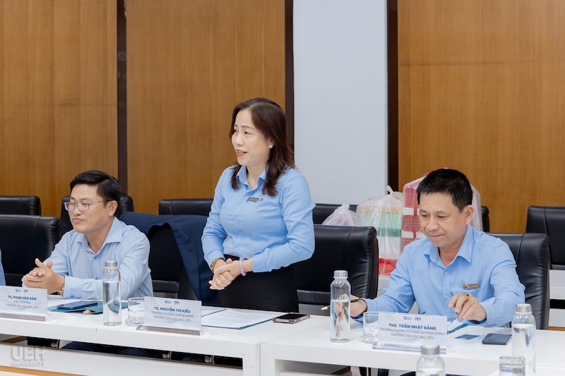 Phát biểu tại buổi làm việc, TS. Đinh Công Khải - Phó Giám đốc UEH chia sẻ: “Trong khuôn khổ hợp tác giữa UEH và UBND tỉnh Cà Mau, một trong những nội dung được hai bên đặc biệt quan tâm là phát triển và cung ứng nguồn nhân lực chất lượng cao, đáp ứng yêu cầu phát triển kinh tế - xã hội của tỉnh trong giai đoạn tới. Vì vậy, việc tăng cường hợp tác với Trường Đại học Bạc Liêu sẽ góp phần kết nối nguồn lực đào tạo, chia sẻ kinh nghiệm và phát huy thế mạnh của mỗi bên trong công tác đào tạo, bồi dưỡng nguồn nhân lực cho địa phương. Trên tinh thần đó, chúng tôi mong muốn đẩy mạnh trao đổi và chia sẻ các kinh nghiệm thực tiễn, qua đó từng bước làm rõ và triển khai các nội dung hợp tác cụ thể, phù hợp với định hướng và nhu cầu phát triển của các bên.”