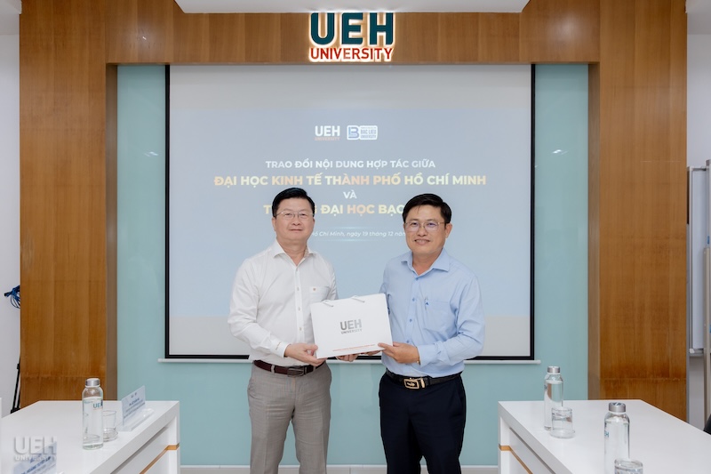 Chiều ngày 19/12/2025, tại Cơ sở A, Đại học Kinh tế Thành phố Hồ Chí Minh (UEH) đã có buổi làm việc với đoàn công tác Trường Đại học Bạc Liêu nhằm thảo luận các nội dung hợp tác và mở ra những định hướng phối hợp trong thời gian tới.