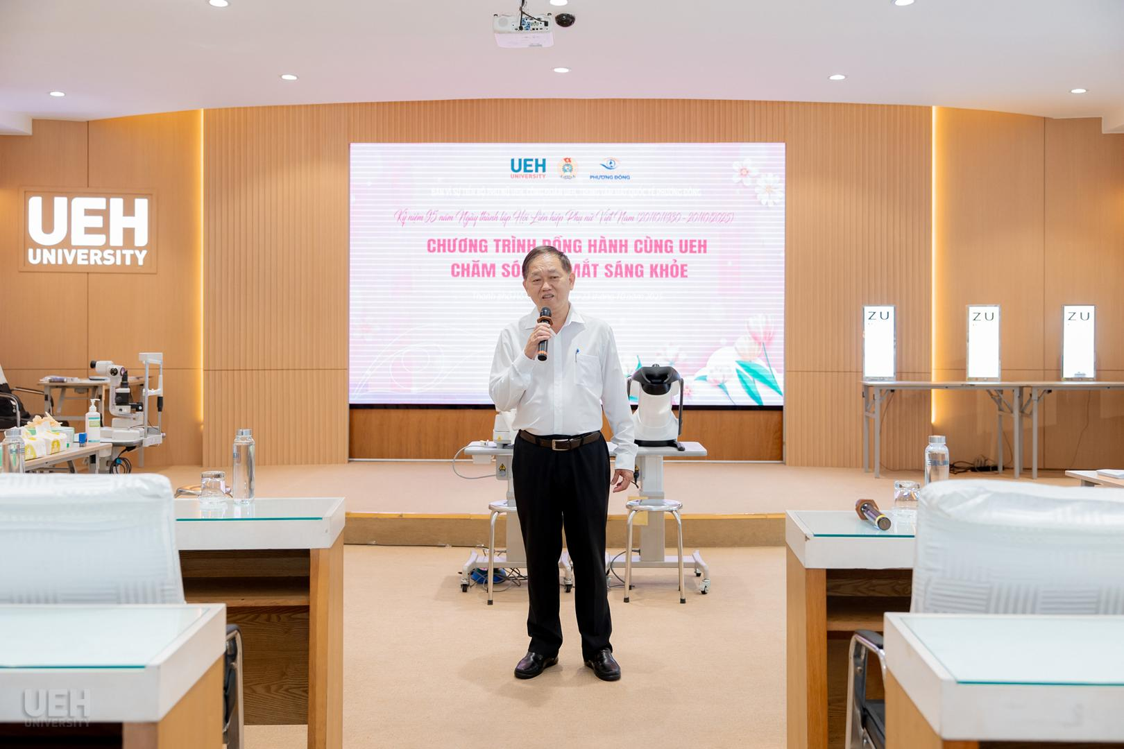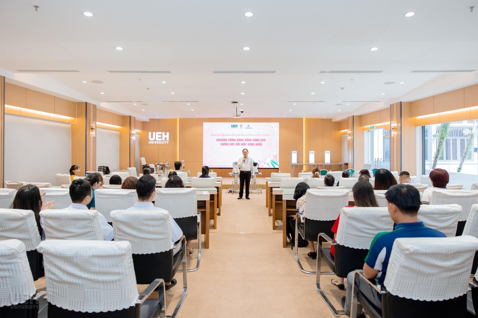 Phát biểu khai mạc chương trình, TS. Nguyễn Thiện Duy - Chủ tịch Công đoàn UEH, Phó Trưởng Ban Vì sự tiến bộ phụ nữ UEH đã gửi lời chúc mừng ý nghĩa đến toàn thể nữ viên chức, người lao động nhà trường. TS. Nguyễn Thiện Duy nhấn mạnh tầm quan trọng của sức khỏe đôi mắt đối với chất lượng công việc và cuộc sống, đồng thời bày tỏ sự vui mừng khi chương trình nhận được sự hưởng ứng tích cực từ toàn thể đoàn viên công đoàn, viên chức, người lao động và gia đình; người học UEH đến tham dự.