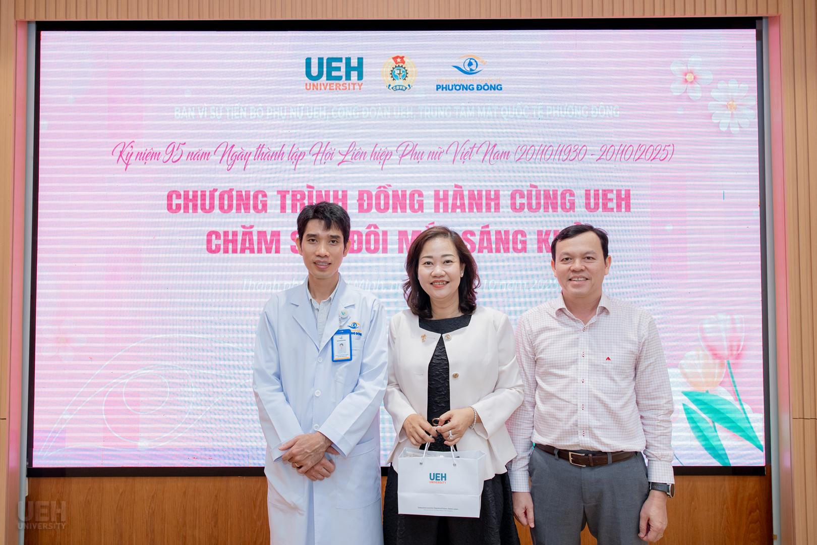 Trong khuôn khổ các hoạt động chào mừng kỷ niệm 95 năm Ngày thành lập Hội Liên hiệp phụ nữ Việt Nam (20/10/1930 - 20/10/2025), sáng ngày 23/10/2025 tại Cơ sở A (59C Nguyễn Đình Chiểu, Phường Xuân Hòa), Ban Vì sự tiến bộ phụ nữ và Công đoàn Đại học Kinh tế Thành phố Hồ Chí Minh (UEH) đã phối hợp cùng Trung tâm Mắt Quốc tế Phương Đông tổ chức thành công Chương trình “Đồng hành cùng UEH chăm sóc đôi mắt sáng khỏe”. Đây là năm thứ ba liên tiếp chương trình ý nghĩa này được tổ chức, bắt đầu từ năm 2023, khẳng định tính bền vững trong cam kết chăm sóc sức khỏe cho viên chức, người lao động và người học của UEH. Chương trình năm nay đã thu hút được đông đảo sự quan tâm với hơn 200 người tham dự.