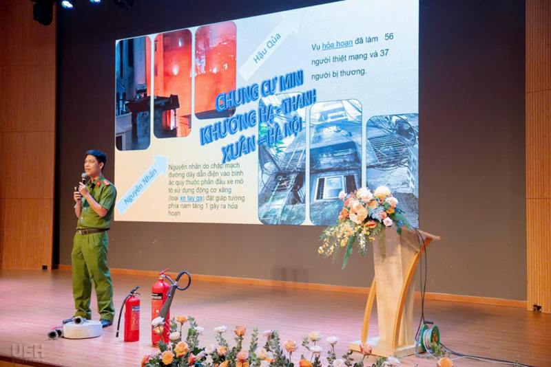 Ngày 04 tháng 10 hàng năm là Ngày toàn dân Phòng cháy chữa cháy (PCCC), một dịp quan trọng để mỗi cá nhân, tổ chức và cơ quan nhìn nhận lại tầm quan trọng của công tác PCCC. Hòa cùng tinh thần đó, Đại học Kinh tế Thành phố Hồ Chí Minh (UEH) đã và đang triển khai nhiều hoạt động thiết thực, chủ động nhằm nâng cao nhận thức, trang bị kiến thức và kỹ năng cần thiết về PCCC cho toàn thể giảng viên, người lao động và người học toàn trường.