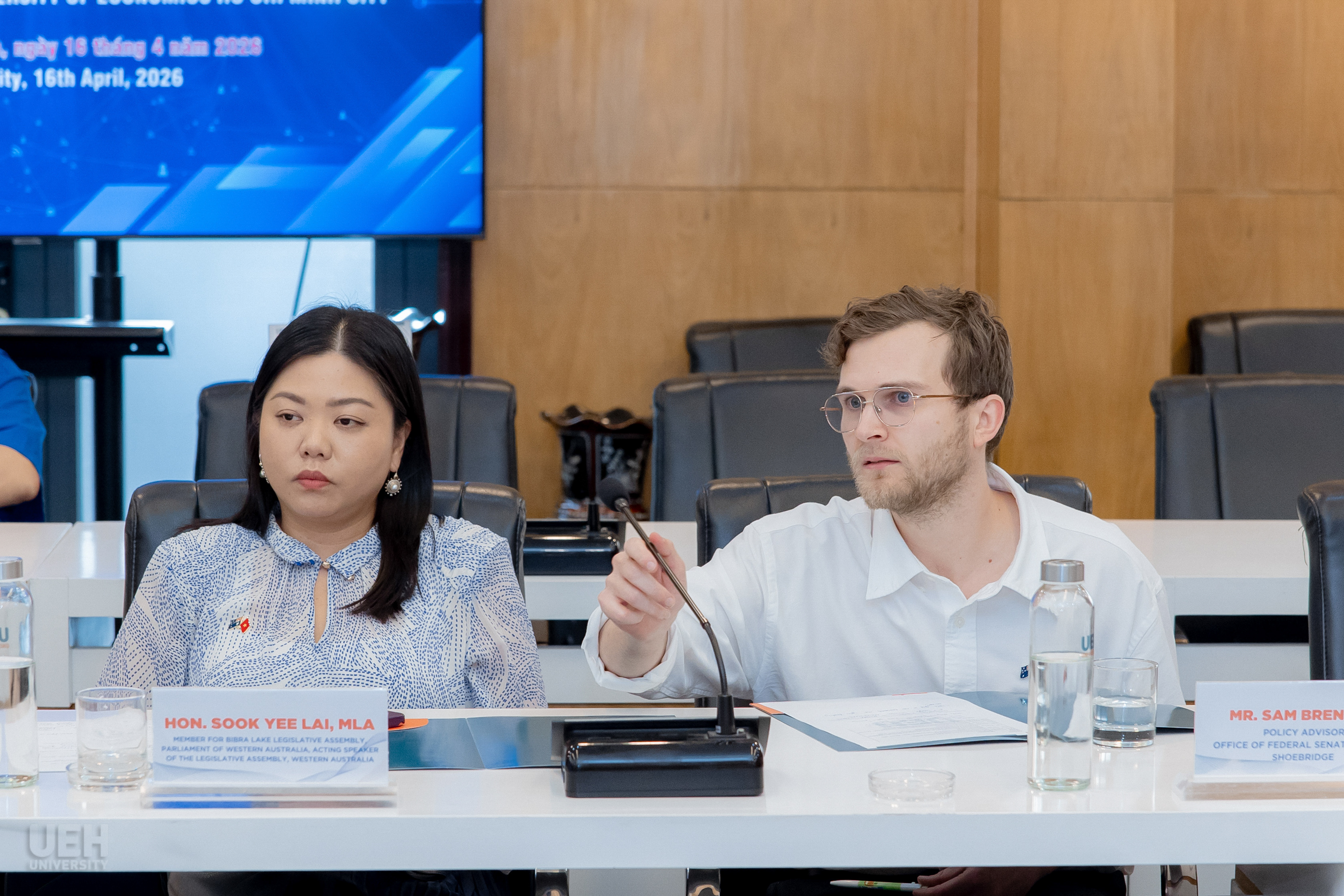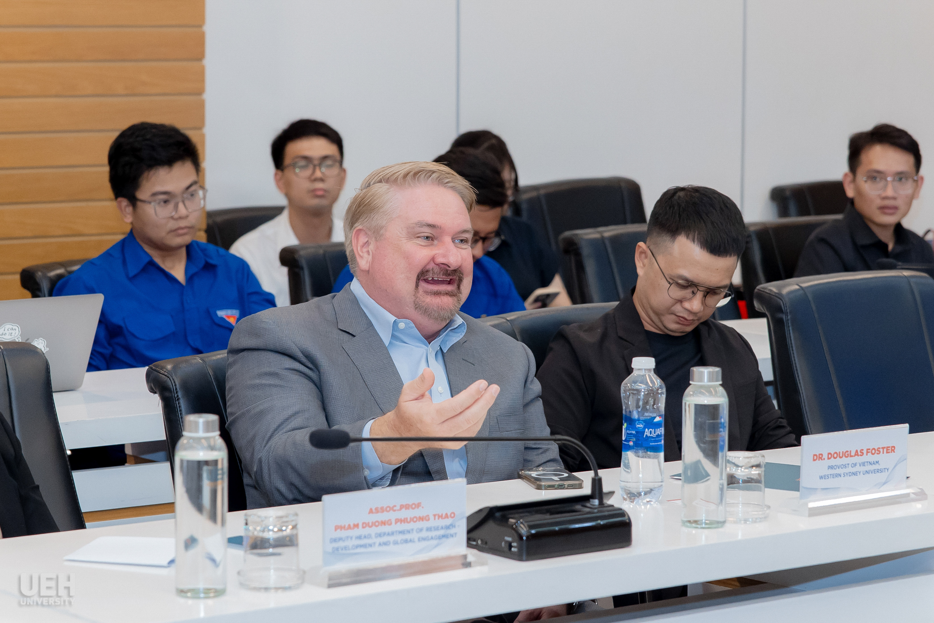 Phiên thảo luận mở tiếp theo diễn ra sôi nổi với nhiều nội dung được hai bên cùng quan tâm, như mô hình Đại học Xanh của UEH, xu hướng nghề nghiệp và thị trường lao động tại Việt Nam và Úc, cùng các khả năng hợp tác trong trao đổi văn hóa. Đáng chú ý, một đề xuất nổi bật được đưa ra là xây dựng chương trình trao đổi văn hóa dành cho sinh viên Úc, tạo điều kiện học tiếng Việt và tìm hiểu sâu hơn về văn hóa, con người Việt Nam. Đây được xem là một hướng đi thiết thực nhằm tăng cường giao lưu văn hóa và thắt chặt quan hệ hữu nghị giữa hai quốc gia.