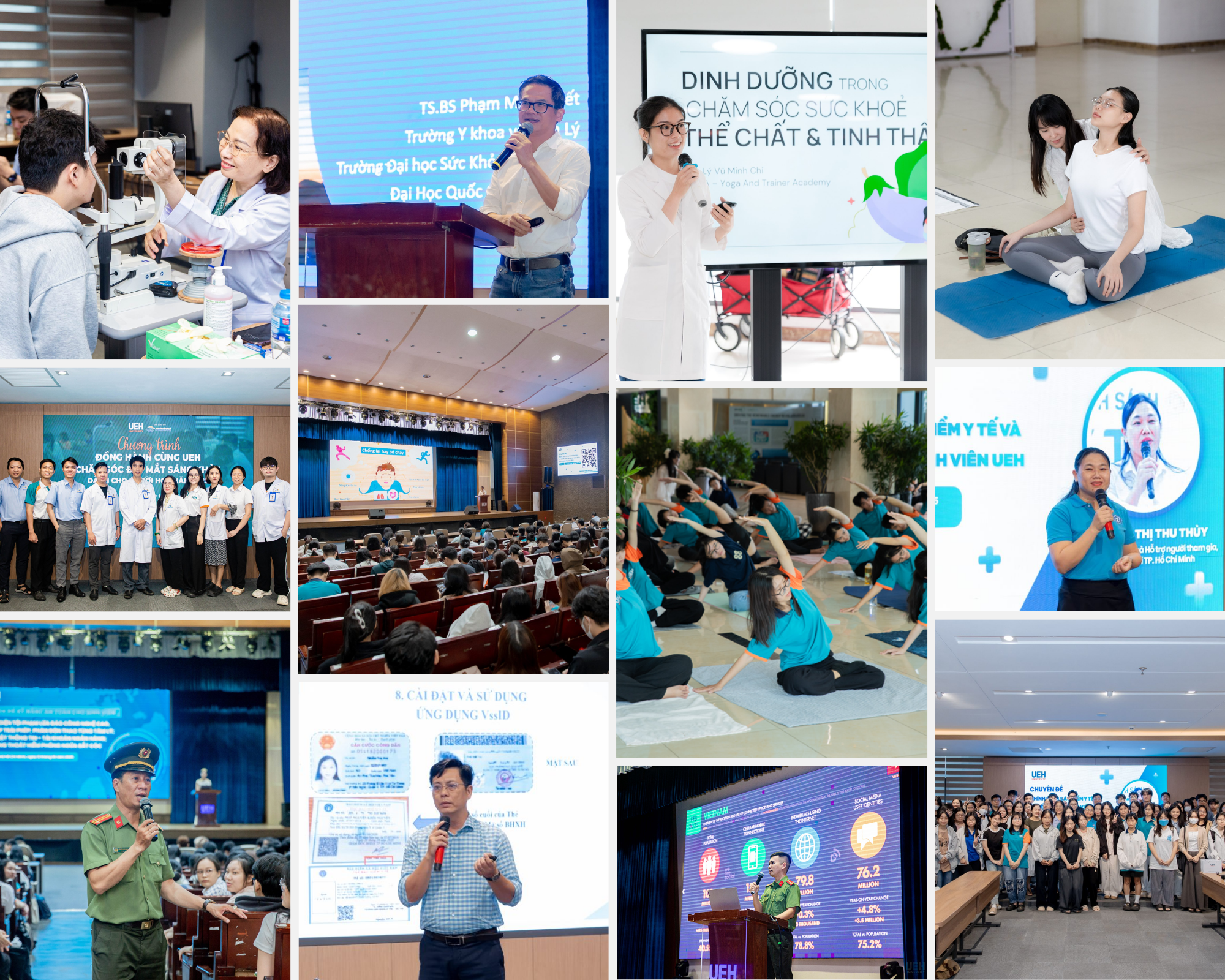 Trước yêu cầu ngày càng cao của xã hội hiện đại, UEH chú trọng hỗ trợ người học phát triển toàn diện cả về chuyên môn, sức khỏe thể chất, tinh thần và đời sống văn hóa. Trong năm 2025, nhiều chương trình chăm sóc sức khỏe và nâng cao đời sống tinh thần được triển khai đồng bộ thông qua các hoạt động thể thao, văn hóa – nghệ thuật, hội thi học thuật, tư vấn – khám sức khỏe, workshop tâm lý và các chuyên đề về lối sống lành mạnh. Song song đó, Ban Chăm sóc người học duy trì hiệu quả công tác y tế học đường với hàng nghìn lượt khám, tư vấn, sơ cấp cứu; tỷ lệ sinh viên tham gia bảo hiểm y tế đạt 98,79%, góp phần bảo đảm an sinh và tạo không gian học tập an toàn, đồng cảm cho người học.