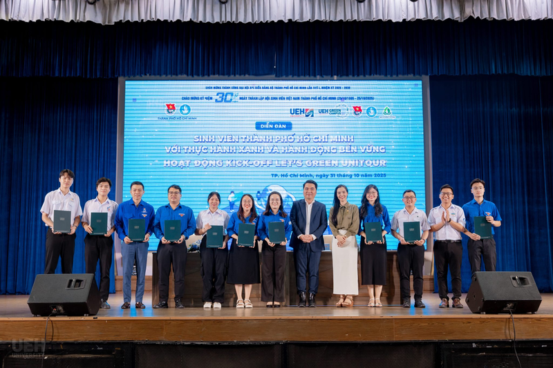 Đoàn Thanh niên UEH vinh dự nhận Giải thưởng Hồ Hảo Hớn 2026 với dự án “Hành trình sinh viên UEH hành động vì mục tiêu phát triển bền vững và lan tỏa mô hình Đại học xanh”