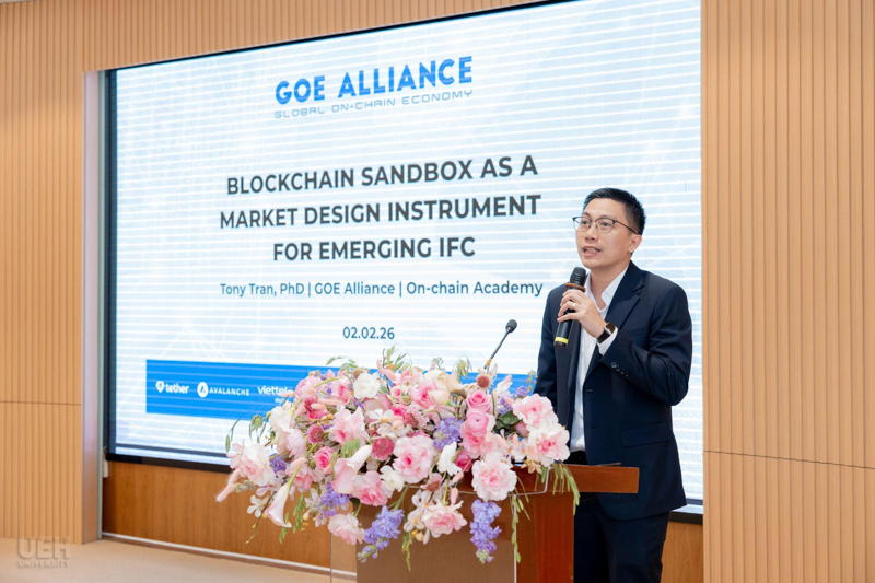 Ngày 02/02/2026, Đại học Kinh tế Thành phố Hồ Chí Minh (UEH) tổ chức Hội thảo khoa học với chủ đề “Nghiên cứu cơ chế thử nghiệm có kiểm soát cho lĩnh vực blockchain và tài sản mã hóa tại VIFC-HCMC”, quy tụ các nhà khoa học, chuyên gia, đại diện cơ quan quản lý và doanh nghiệp tài chính – công nghệ. Hội thảo do Liên minh Kinh tế On-chain Toàn cầu (GOE Alliance) tài trợ, góp phần chia sẻ kinh nghiệm quốc tế và thảo luận mô hình sandbox phù hợp điều kiện Việt Nam.