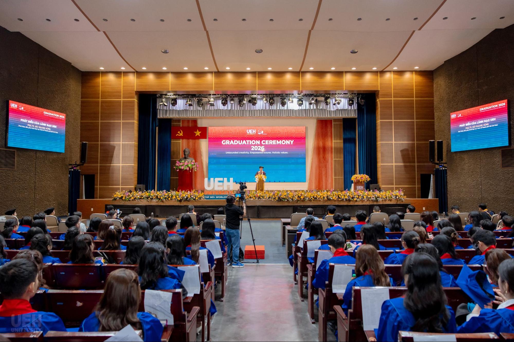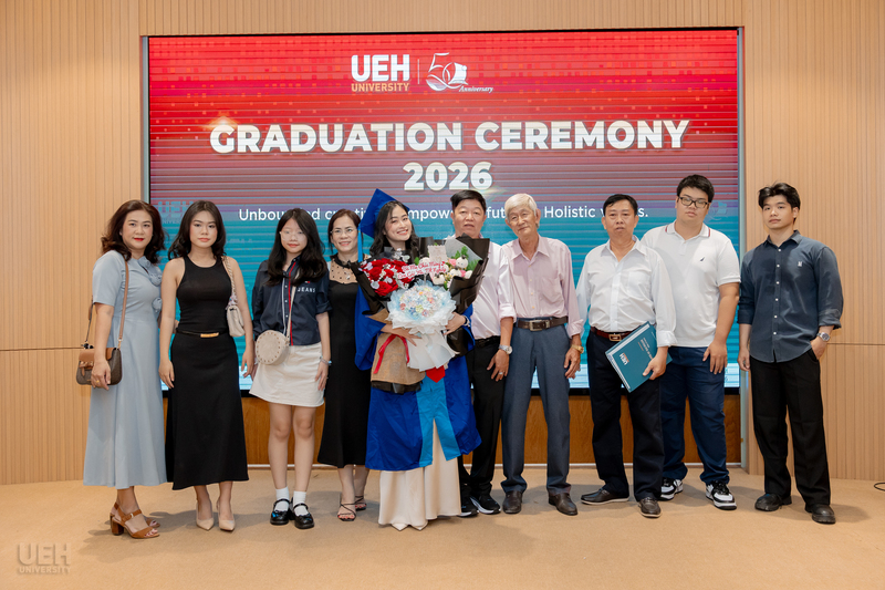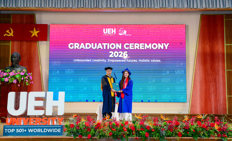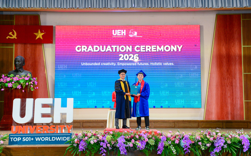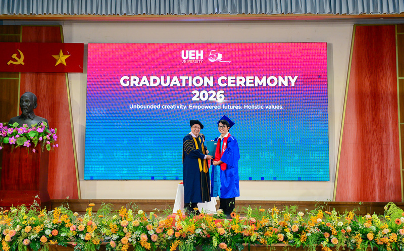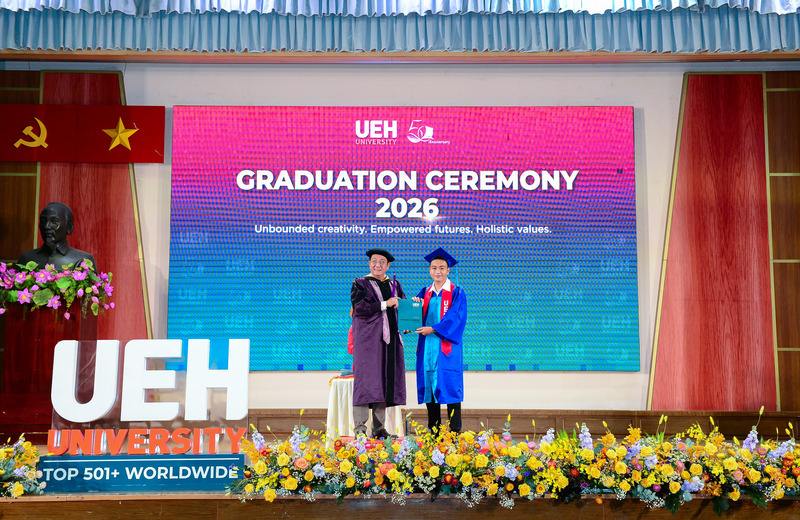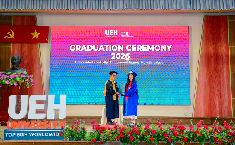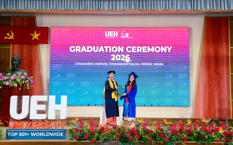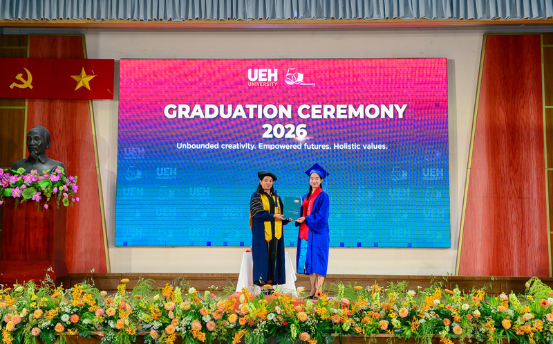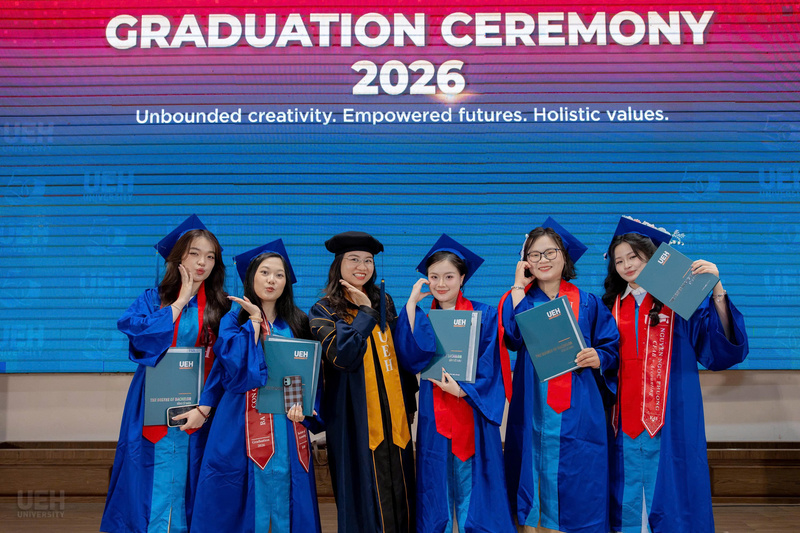 Từ ngày 21/03-12/04/2026, Đại học Kinh tế Thành phố Hồ Chí Minh (UEH) đã long trọng tổ chức Lễ tốt nghiệp cho hơn 6.000 người học UEH các bậc hệ đào tạo từ Tiến sĩ, Thạc sĩ, Đại học chính quy (ĐHCQ) tại cơ sở TP.HCM và UEH Mekong, Văn bằng 2 ĐHCQ, Liên thông ĐHCQ và Đại học Vừa làm vừa học (VLVH).