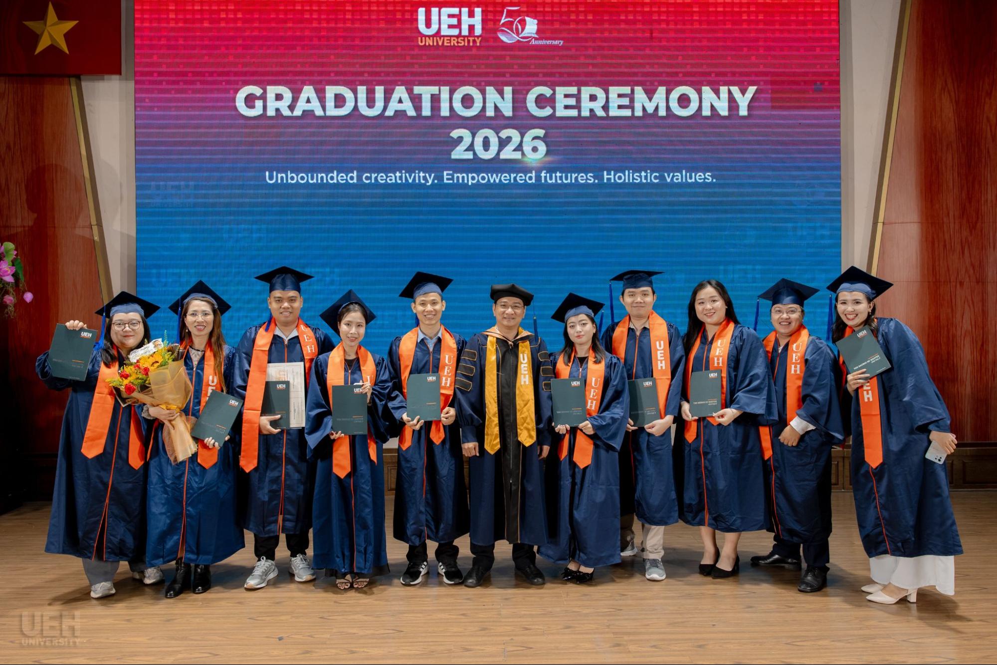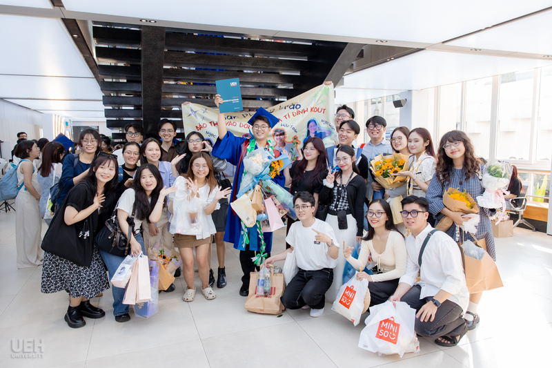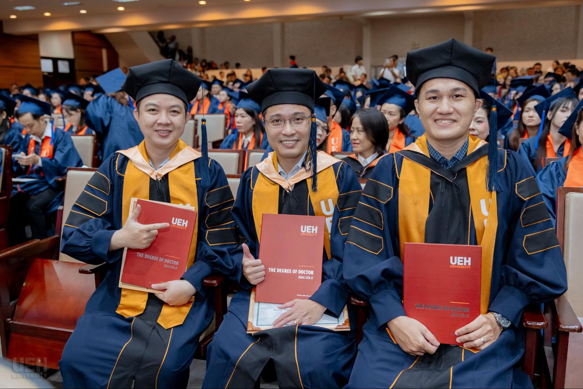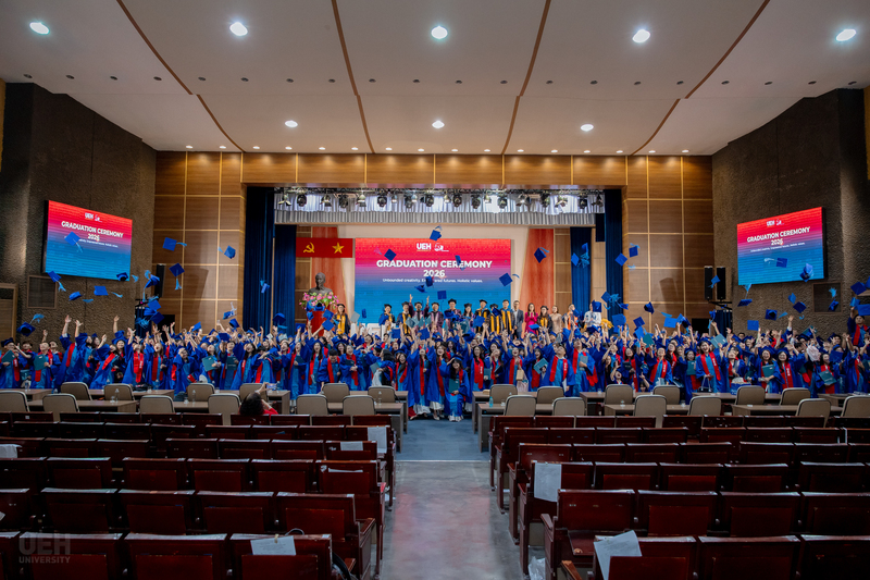 Đại học Kinh tế Thành phố Hồ Chí Minh chúc mừng các Tân Tiến sĩ, Thạc sĩ, Cử nhân chính thức tốt nghiệp! Đây là cột mốc khép lại hành trình học tập và rèn luyện đầy nỗ lực của các bạn, đồng thời cũng mở ra những chân trời mới, cơ hội mới để tiếp tục nghiên cứu, cống hiến và phụng sự tri thức cho xã hội, cộng đồng. Với nền tảng chuyên môn được bồi đắp tại mái trường UEH, các Tân Tiến sĩ, Thạc sĩ và Cử nhân tại UEH sẵn sàng đặt chân vào thị trường lao động, bước ra thế giới, sẵn sàng dấn thân hội nhập toàn cầu./.