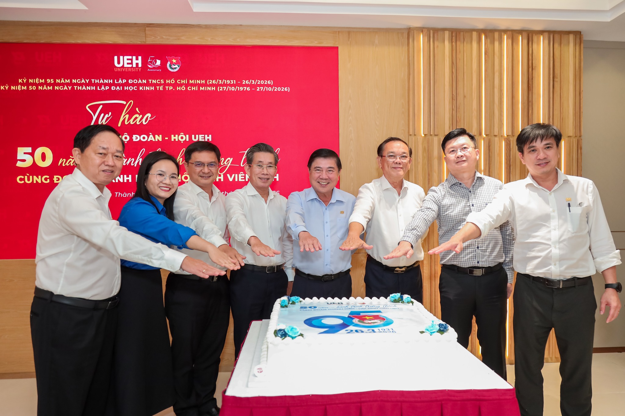 Hòa chung trong không khí kỷ niệm 95 năm ngày thành lập Đoàn TNCS Hồ Chí Minh (26/3/1931 - 26/3/2026), chiều 27/3/2026 tại cơ sở A UEH - Nguyễn Đình Chiểu, Đoàn Thanh niên Đại học Kinh tế Thành phố Hồ Chí Minh (UEH) đã phối hợp với Ban Liên lạc cựu cán bộ Đoàn - Hội UEH tổ chức Chương trình họp mặt truyền thống cán bộ Đoàn - Hội UEH các thời kỳ.
