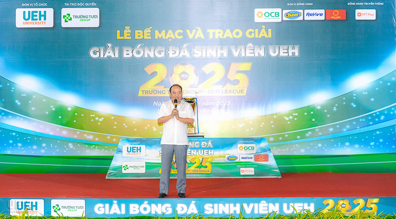 Đại diện nhà tài trợ độc quyền, Ông Phạm Hương Sơn - Chủ tịch HĐQT Tập đoàn Trường Tươi chia sẻ niềm vui khi được đồng hành cùng UEH trong việc tạo ra một sân chơi ý nghĩa, đồng thời khẳng định cam kết của tập đoàn trong việc hỗ trợ các tài năng bóng đá trẻ và các hoạt động phát triển cộng đồng.