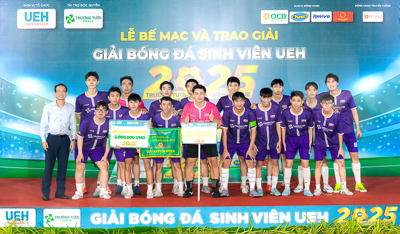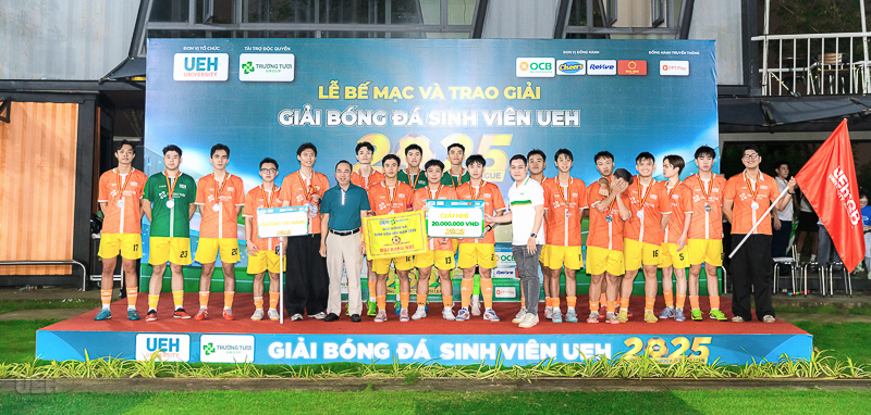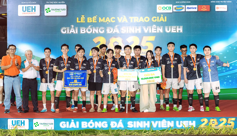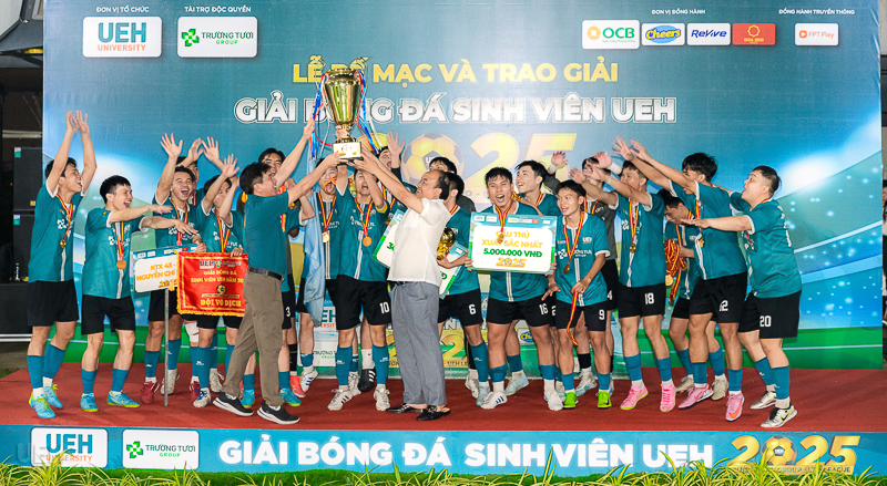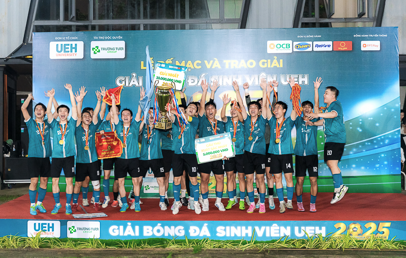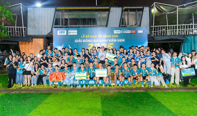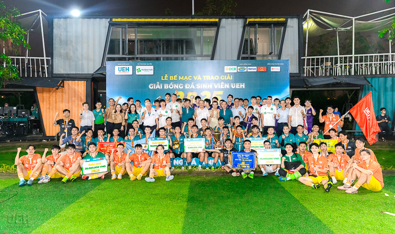 Vào ngày 16/11/2025, tại sân bóng đá UEH Nguyễn Văn Linh, Lễ Bế mạc và trao giải Giải bóng đá sinh viên Trường Tươi Group - UEH League 2025 đã diễn ra trong không khí trang trọng và sôi nổi. Sự kiện đã tổng kết một hành trình kéo dài 7 tháng, vinh danh những tập thể và cá nhân xuất sắc, đồng thời chính thức khép lại một mùa giải thành công rực rỡ.