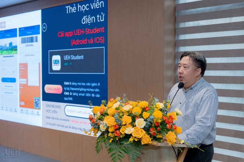Tại buổi lễ, ThS. Nguyễn Đức Việt - đại diện Ban Đào tạo UEH đã trình bày tổng quan quy chế học tập và hướng dẫn sử dụng hệ thống của UEH, tạo điều kiện để học viên chuẩn bị đầy đủ trước khi bước vào quá trình đào tạo.