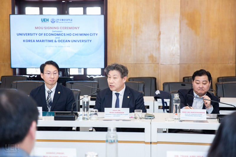 Ngày 30/01/2026, Đại học Kinh tế Thành phố Hồ Chí Minh (UEH) tổ chức Lễ ký kết Biên bản ghi nhớ (MOU) với Korea Maritime & Ocean University (KMOU). Thỏa thuận đánh dấu bước tiến quan trọng trong chiến lược quốc tế hóa và phát triển liên ngành của hai bên, đồng thời mở ra các cơ hội hợp tác thiết thực về đào tạo, nghiên cứu và kết nối học thuật quốc tế.