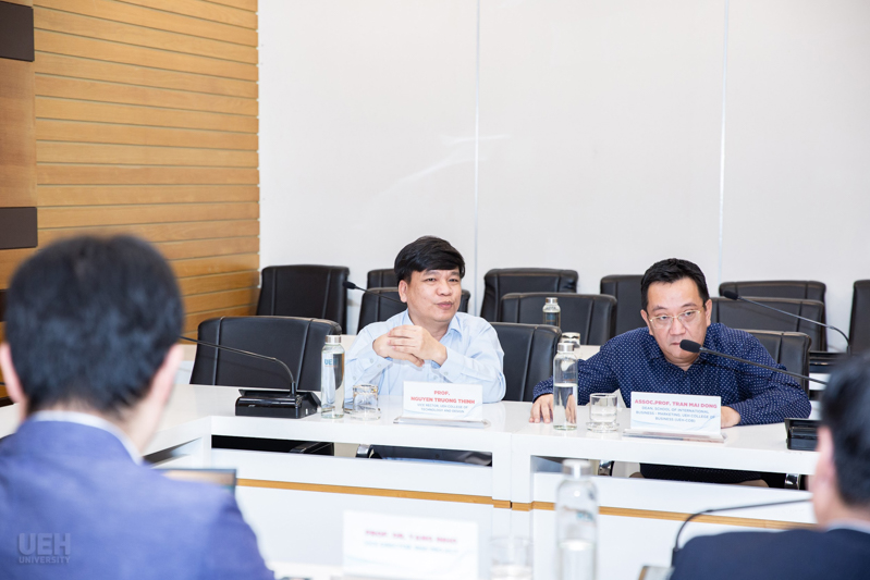 Đại diện Trường thành viên, khoa/viện UEH trao đổi với đối tác