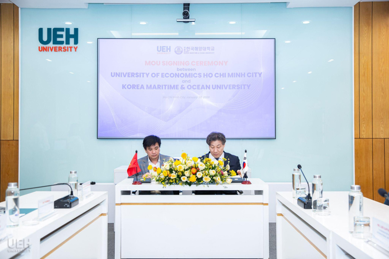 Lễ ký kết biên bản ghi nhớ (MOU) giữa Đại học Kinh tế Thành phố Hồ Chí Minh (UEH) và Đại học Hàng hải và Đại dương Hàn Quốc (Korea Maritime & Ocean University - KMOU)