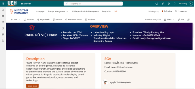 Nền tảng giúp tự động hóa 30–40% khối lượng công việc hành chính, hỗ trợ ra quyết định dựa trên dữ liệu theo thời gian thực, đồng thời hình thành hồ sơ số xuyên suốt cho từng startup trong quá trình ươm tạo. UII Digital Hub trong tương lai có thể được “đóng gói” thành một nền tảng quản lý chương trình chung cho các trung tâm ươm tạo vệ tinh của UEH tại Vĩnh Long, Khánh Hòa; các đơn vị khác của trường có chương trình đào tạo ngắn hạn, bồi dưỡng, hoặc hỗ trợ sinh viên/giảng viên khởi nghiệp.