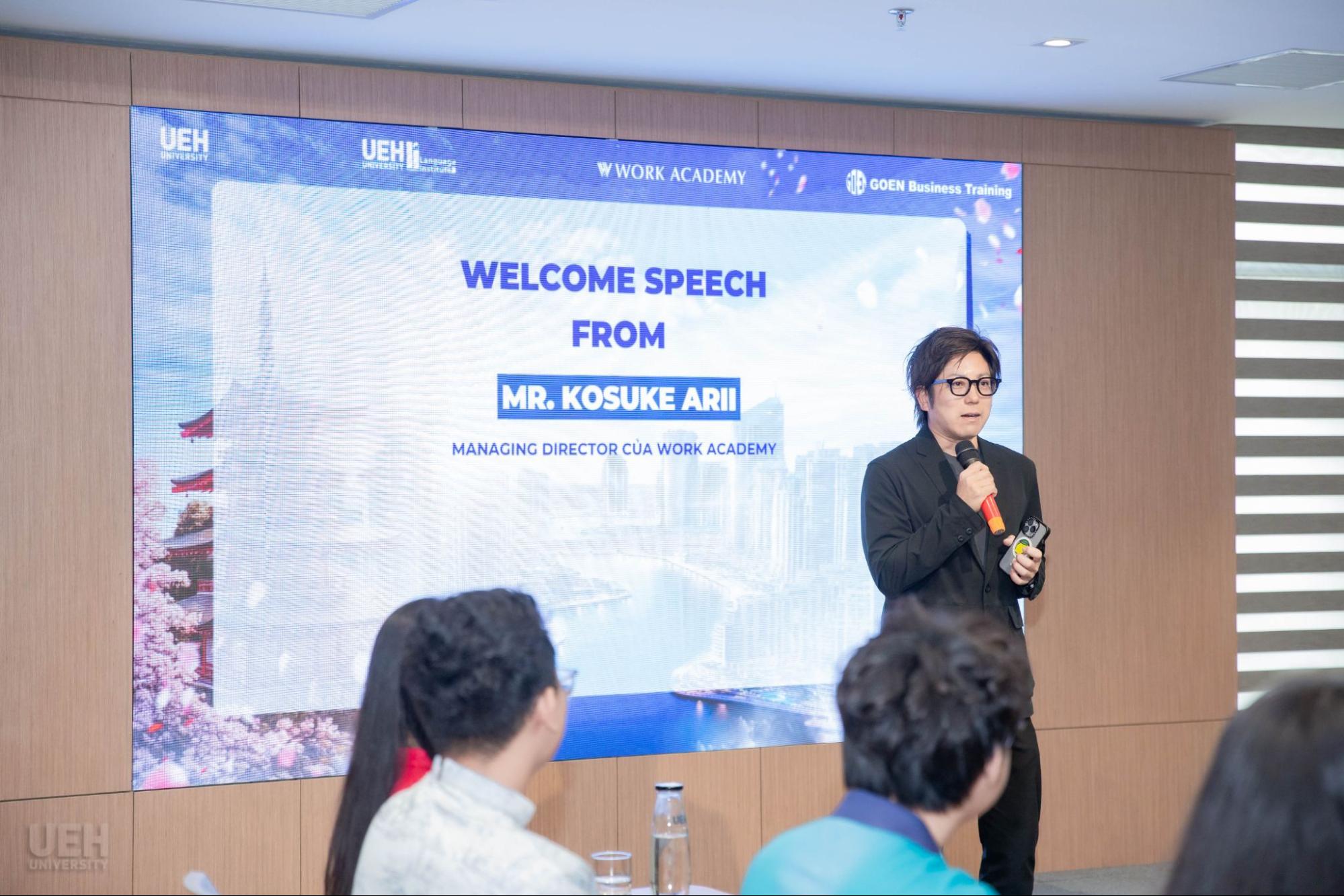 Ông Arii Kosuke - Giám đốc vận hành Work Academy phát biểu tại buổi giao lưu
