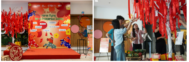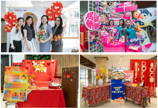 Không gian booth sáng tạo “Lục Vận Khai Xuân”,“Sắc Xuân Thanh Tiên”, “Phúc Mã Du Xuân”, “Tết Nô Lo Gỳ” tại cơ sở B - UEH