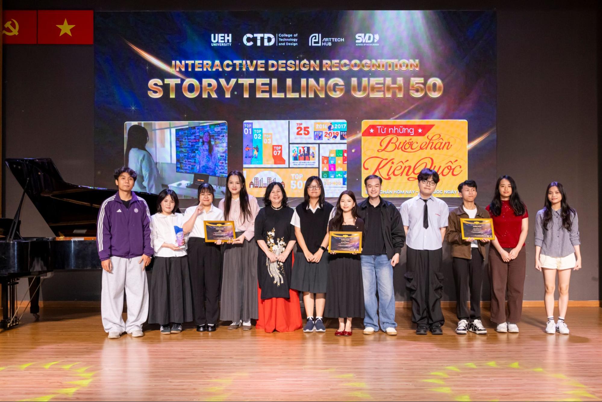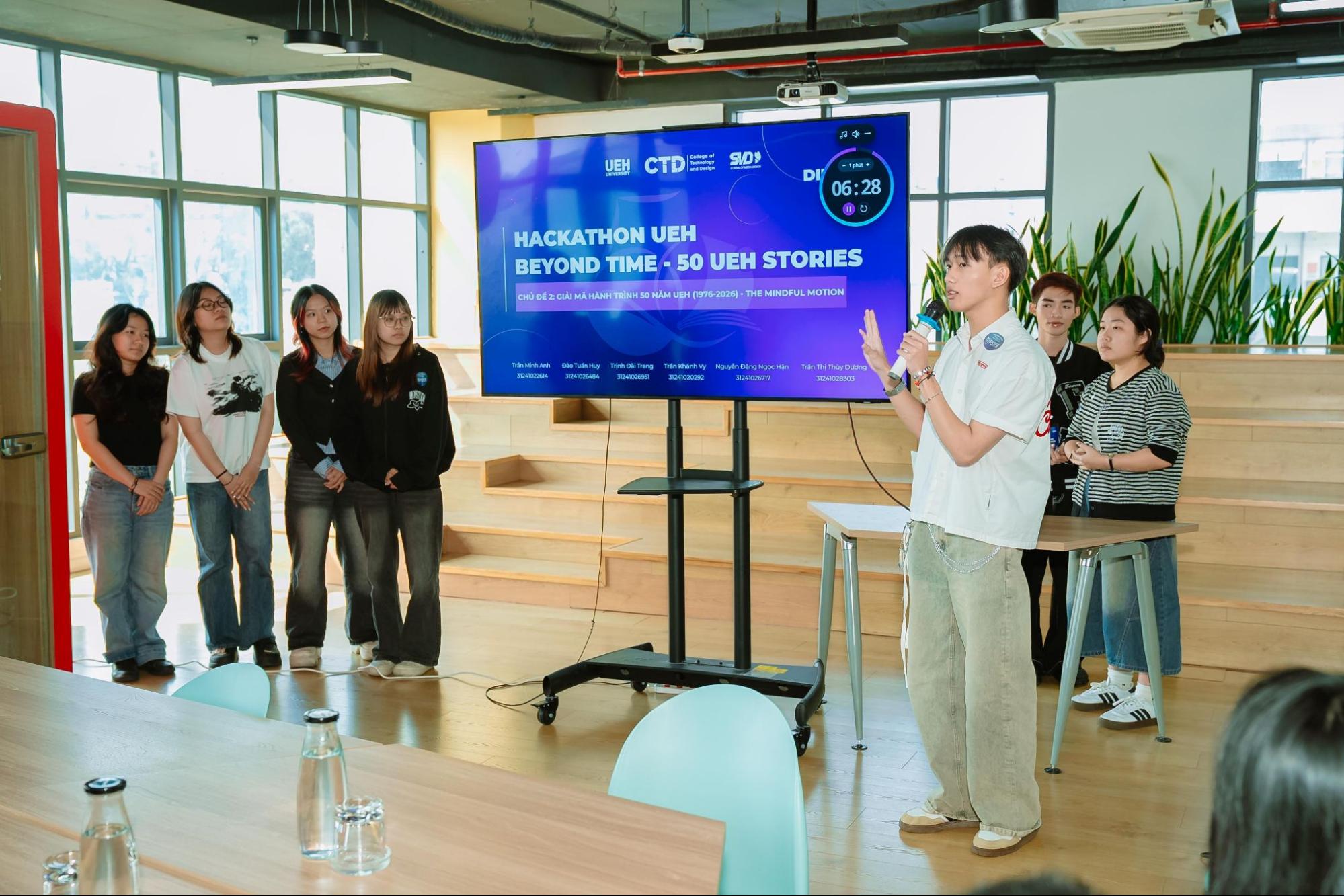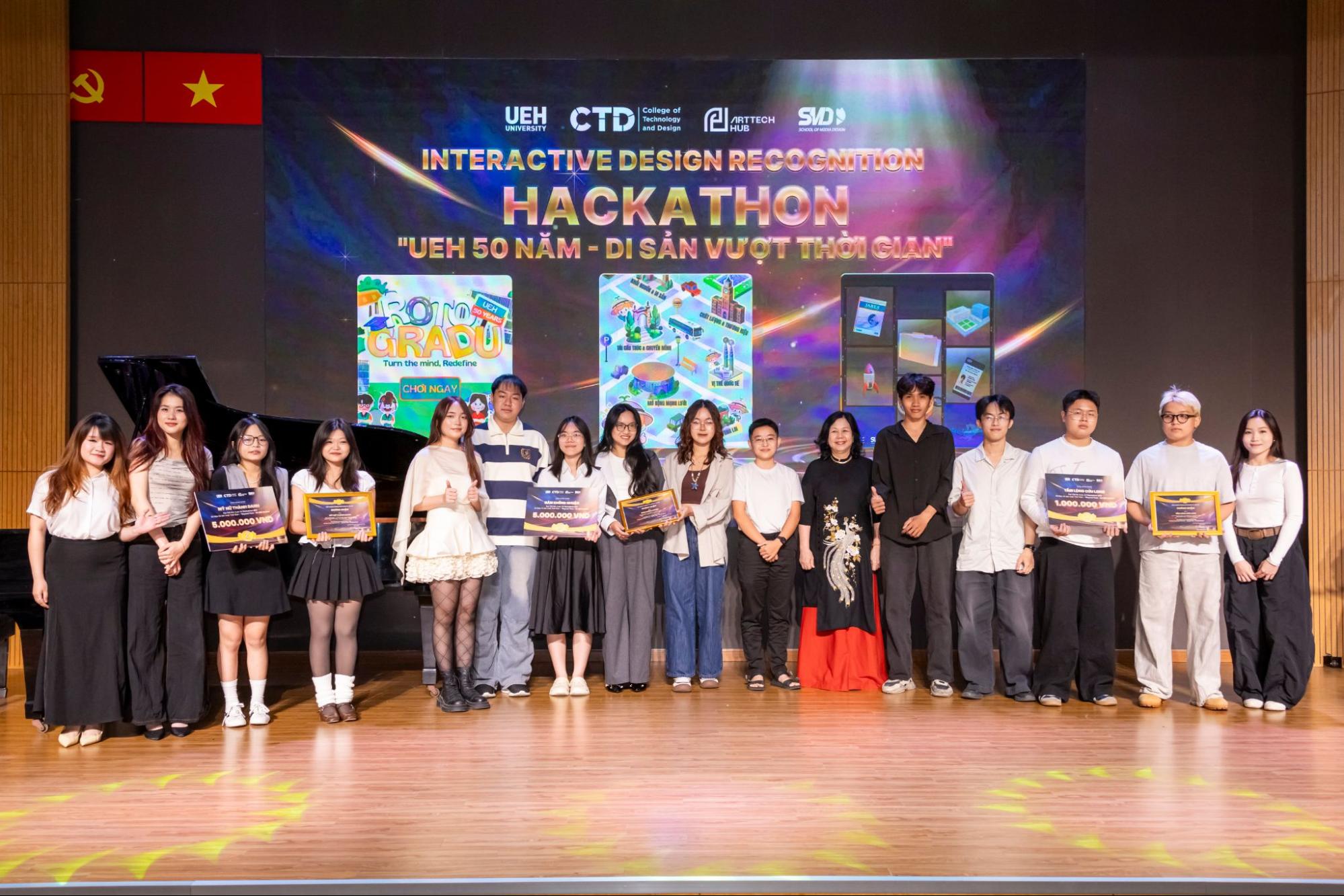 Cuộc thi UEH Hackathon: “Beyond Time - 50 UEH Stories” là hoạt động học thuật - sáng tạo chuyên sâu, khuyến khích sinh viên tái hiện các dấu mốc lịch sử UEH thông qua công nghệ đa phương tiện và digital storytelling (kể chuyện số). Trong thử thách cường độ cao kéo dài 24 giờ, sinh viên từ các lĩnh vực Công nghệ - Thiết kế - Kinh doanh - Truyền thông làm việc theo mô hình liên ngành để phát triển sản phẩm kết hợp thiết kế đồ họa, minh họa số, tương tác AR và trải nghiệm người dùng. Với 9 đội thi và hơn 40 thí sinh, cuộc thi cho thấy tinh thần “học thuật gắn thực hành”, đồng thời mở ra tiềm năng ứng dụng các sản phẩm sáng tạo trong chuỗi hoạt động kỷ niệm 50 năm hình thành và phát triển UEH (27/10/1976 - 27/10/2026). Ban Tổ chức đã vinh danh các đội thi đạt giải với những chủ đề sáng tạo: