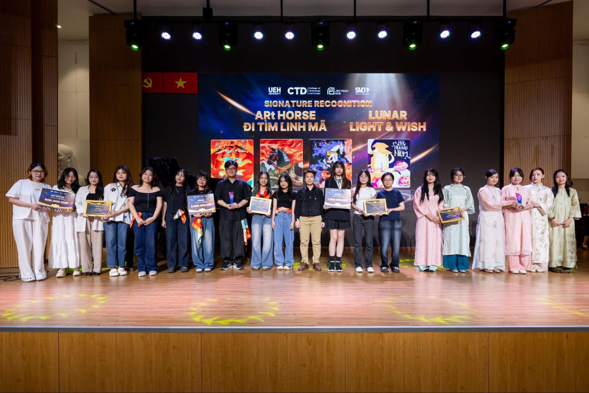 Các hạng mục nổi bật gồm: Interactive Design Recognition, Music Inspiration Recognition, Media Impact Recognition, Art Inspiration Recognition và Signature Creative Recognition, qua đó tôn vinh những cá nhân, tập thể và tác phẩm tiêu biểu trong các lĩnh vực thiết kế tương tác, âm nhạc, truyền thông và sáng tạo nghệ thuật. Bên cạnh hoạt động vinh danh, trong khuôn khổ chương trình, Ban Chủ nhiệm Lâm thời ArtTech Club cũng chính thức ra mắt, đánh dấu bước khởi đầu cho một cộng đồng học thuật - sáng tạo mới trong hệ sinh thái ArtTech Hub, nơi kết nối công nghệ, nghệ thuật và tư duy đổi mới, hướng tới không gian thực hành, nghiên cứu và đồng sáng tạo bền vững cho sinh viên UEH.