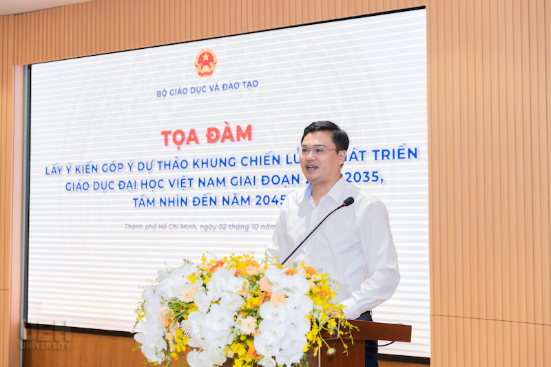 Chiều ngày 02/10/2025, tại Hội trường A.103, Đại học Kinh tế Thành phố Hồ Chí Minh (UEH), Bộ Giáo dục và Đào tạo (Bộ GD&ĐT) đã tổ chức tọa đàm lấy ý kiến góp ý dự thảo Khung chiến lược phát triển Giáo dục đại học Việt Nam giai đoạn 2026-2035, tầm nhìn đến năm 2045. Đây là sự kiện quan trọng trong tiến trình xây dựng định hướng chiến lược phát triển giáo dục đại học trong 10 năm tới, đồng thời đặt nền tảng cho tầm nhìn dài hạn đến năm 2045.