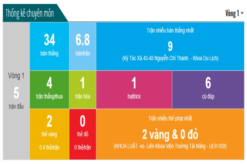 Thống kê chuyên môn Vòng 1 - Bóng đá nam