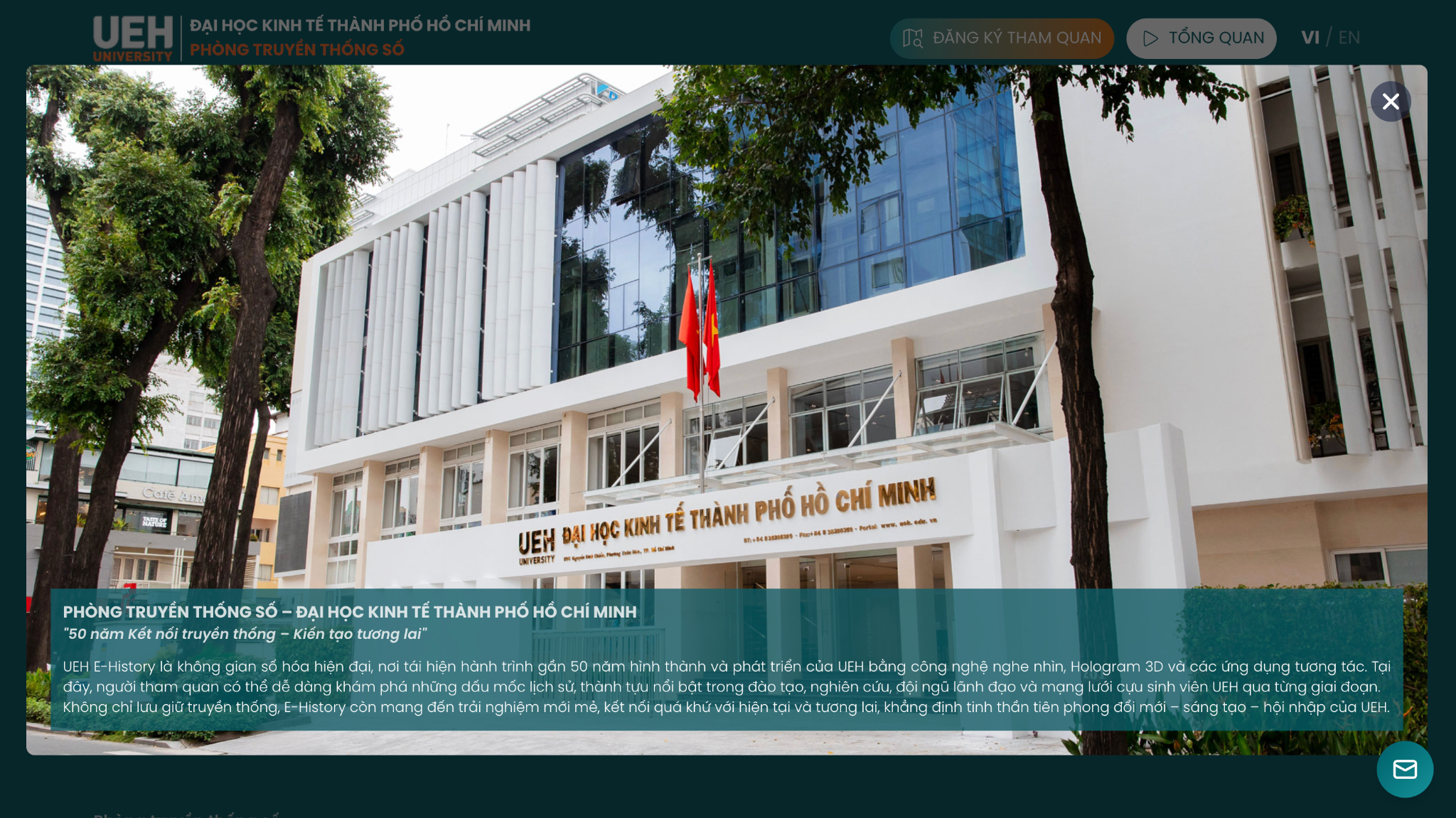 Xuất phát từ không gian Truyền thống số được xây dựng tại cơ sở A, website E-history [https://ehistory.ueh.edu.vn/] được kế thừa và phát triển nhằm lưu giữ những giá trị truyền thống, dấu ấn lịch sử, và những thành tựu nổi bật của UEH qua từng thời kỳ. Đây không chỉ là “ngôi nhà ký ức” của các thế hệ UEHer, mà còn là nơi để cộng đồng UEH và công chúng cùng nhìn lại hành trình bền bỉ, sáng tạo và phụng sự của một đại học Việt Nam tiên phong trong đổi mới, hội nhập và phát triển bền vững. Website giúp mọi người, dù ở bất kỳ đâu đều có thể theo dõi, tìm hiểu, và đóng góp thông tin, cùng UEH tiếp tục hoàn thiện bức tranh di sản sống động của một đại học năng động, sáng tạo và bền vững trong lòng đô thị.