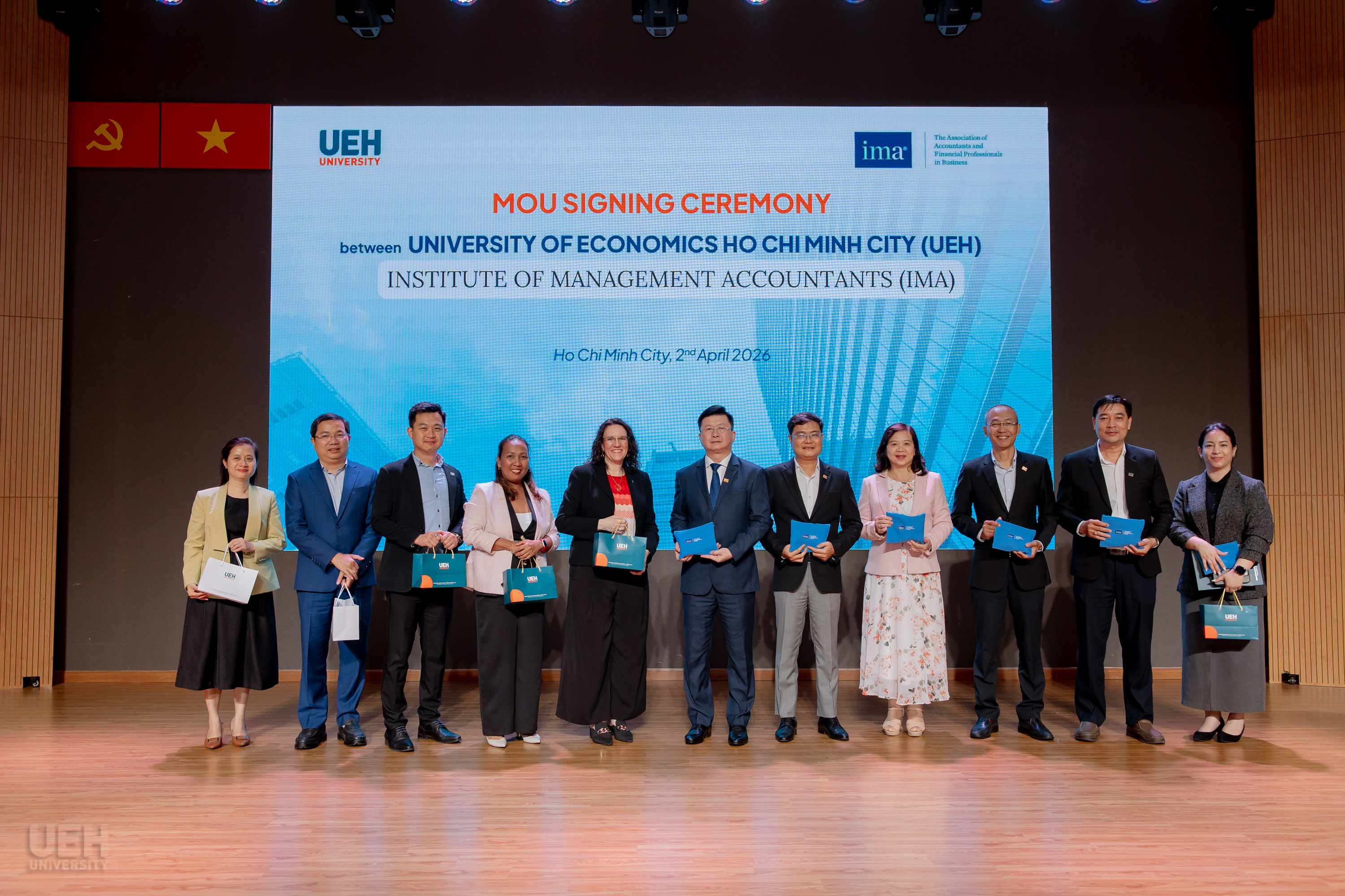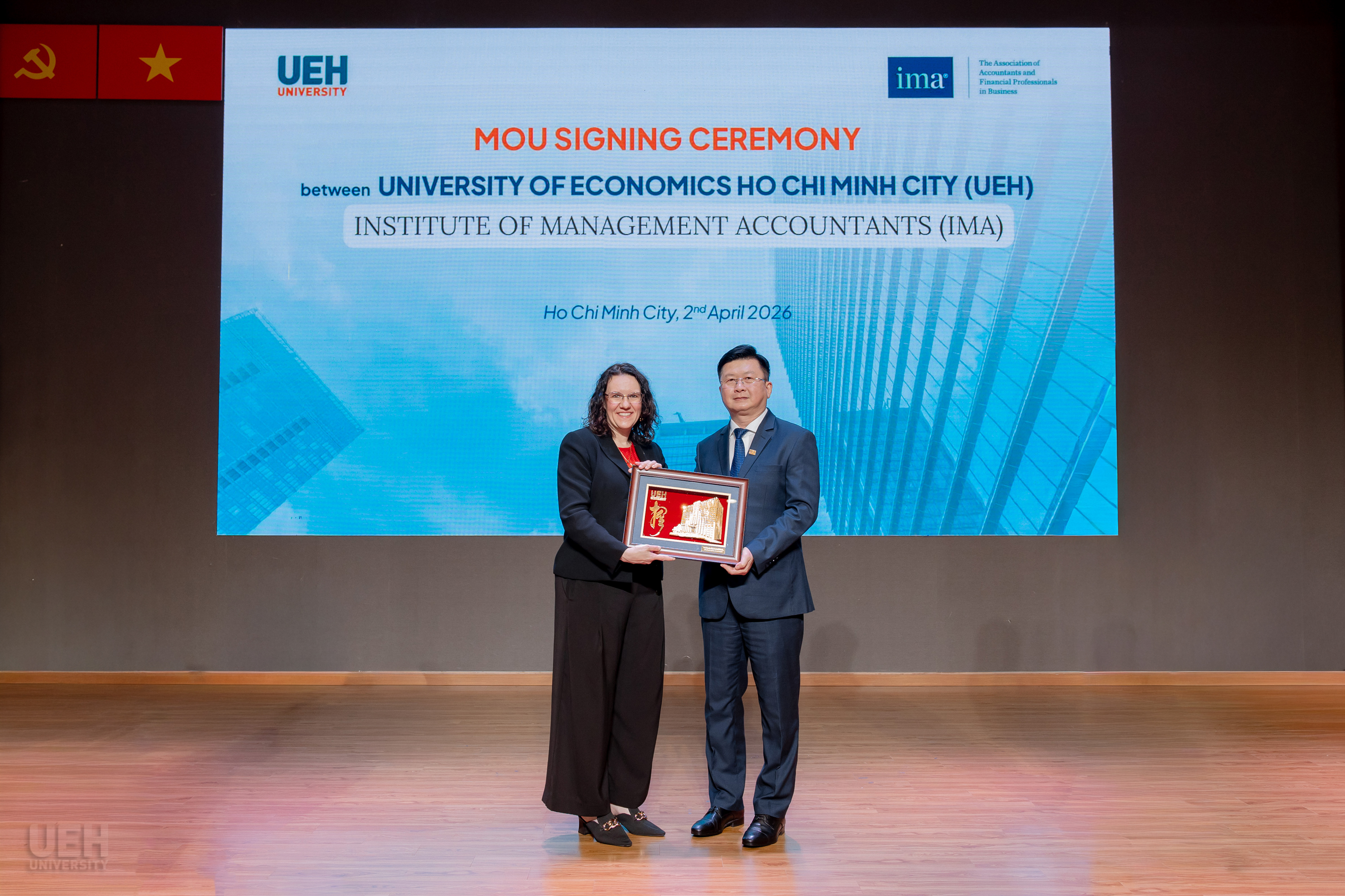 Hướng tới kỷ niệm 50 năm thành lập UEH, UEH và IMA đã chính thức tái ký kết Biên bản ghi nhớ hợp tác (MOU). Nổi bật trong thỏa thuận lần này là cam kết hỗ trợ phát triển năng lực từ IMA: trao tặng thường niên 03 học bổng U.S.CMA cho sinh viên xuất sắc và 02 học bổng cho giảng viên UEH. Thỏa thuận này mở ra cơ hội lớn để cả người học và người dạy tiếp cận các chuẩn mực kế toán quản trị quốc tế.