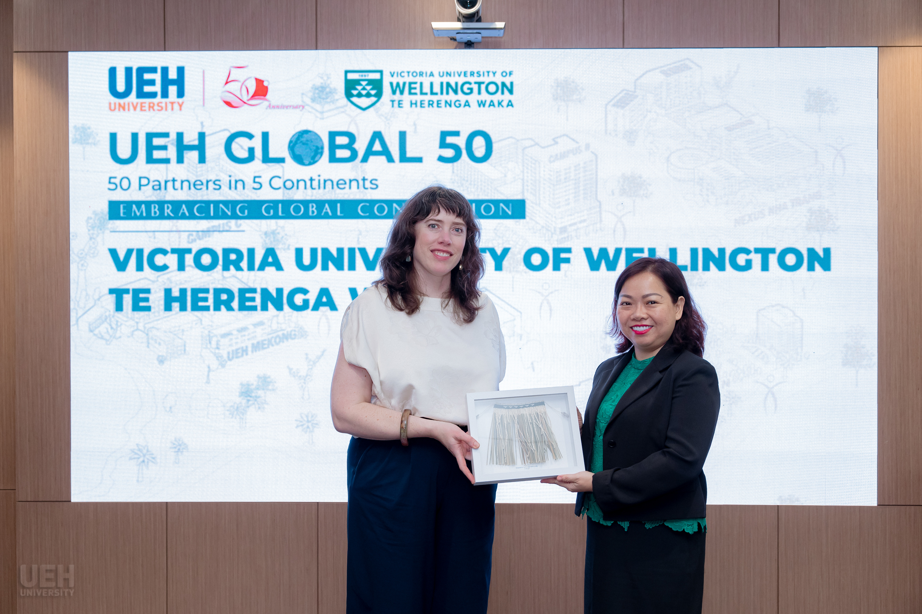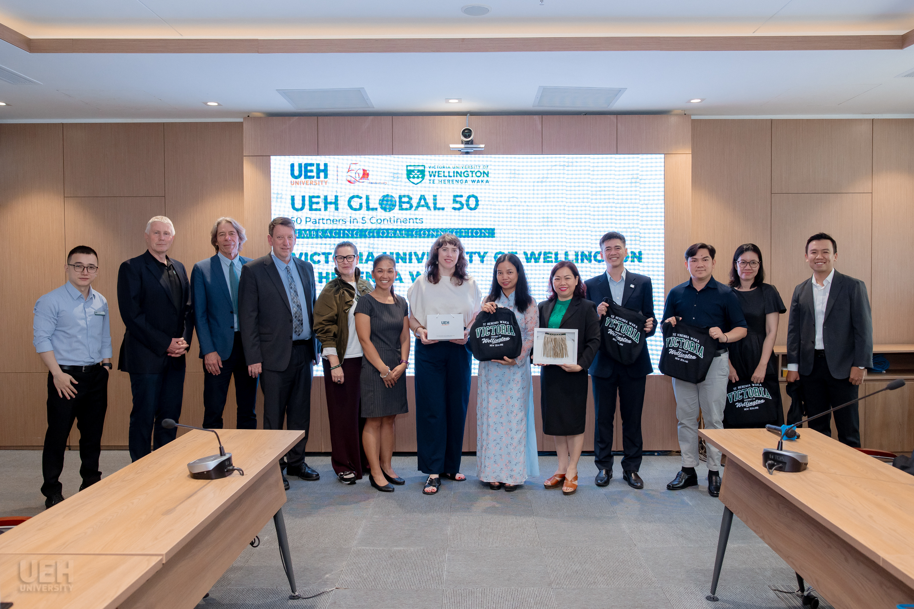 Quan hệ hợp tác giữa UEH và VUW được thiết lập từ năm 2004, tiên phong triển khai chương trình liên kết cử nhân đầu tiên của New Zealand tại Việt Nam. Trong hơn hai thập kỷ, VUW đã đồng hành toàn diện cùng UEH từ việc nâng cao năng lực giảng viên, nâng cấp cơ sở vật chất đến chiến lược kiểm định quốc tế. Đến nay, chương trình đã thu hút hơn 500 sinh viên theo học, với nhiều cựu sinh viên đang làm việc tại các doanh nghiệp trong và ngoài nước.