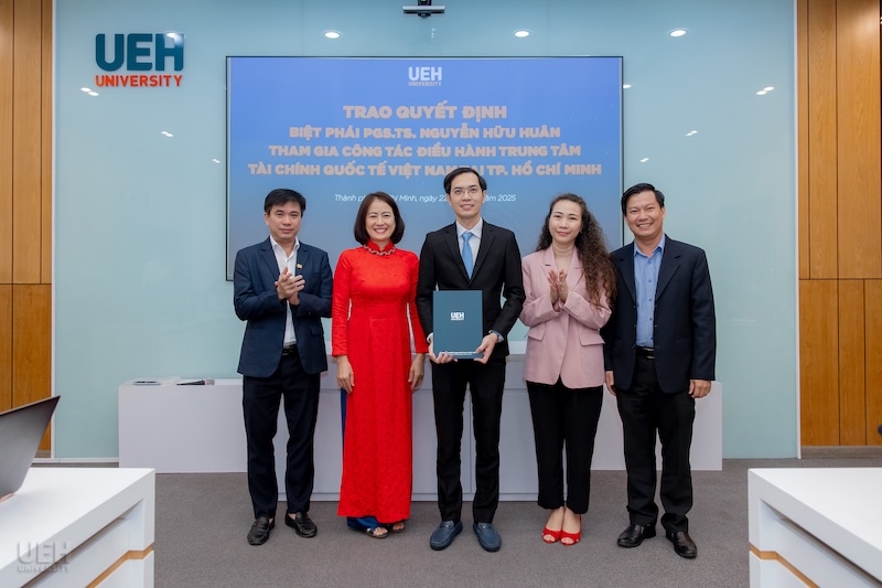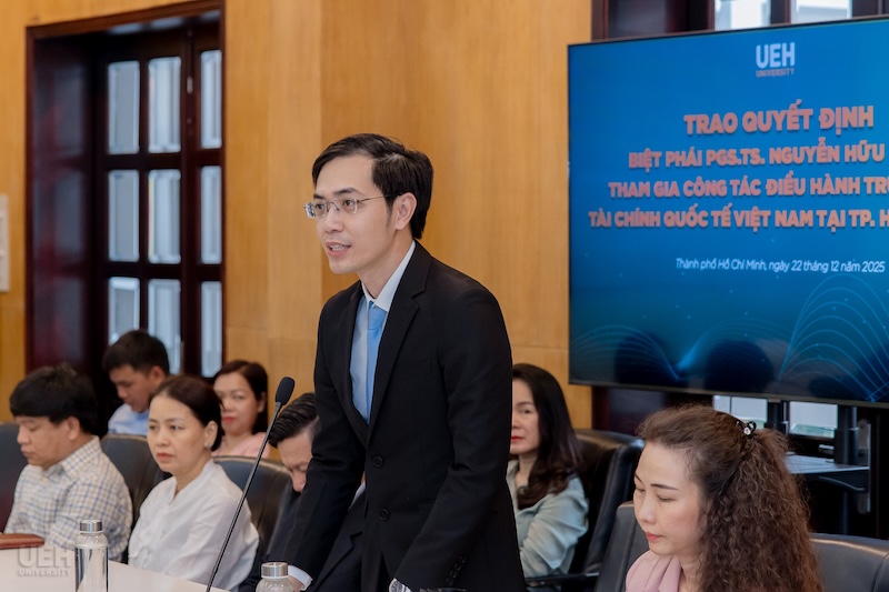 Sáng ngày 22/12/2025, UEH đã trao Quyết định 4014/QĐ-ĐHKT-PTTCNL biệt phái cho PGS.TS. Nguyễn Hữu Huân tham gia trực tiếp vào công tác điều hành IFC HCM - một bước đi thể hiện rõ tinh thần trách nhiệm, sự đồng hành và cam kết lâu dài của UEH đối với các chiến lược phát triển trọng điểm của Thành phố và quốc gia.